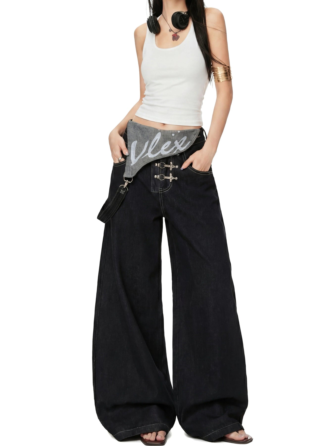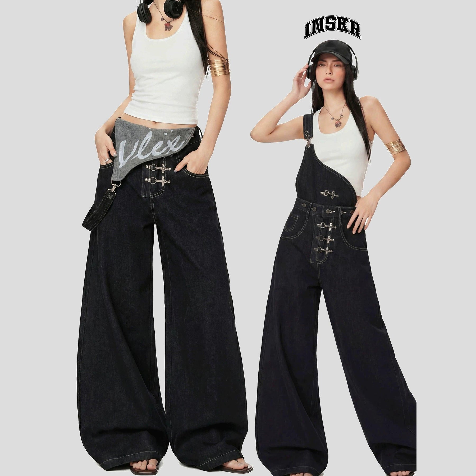 Side Shoulder Strap Fireman Clasp Denim Jumpsuit