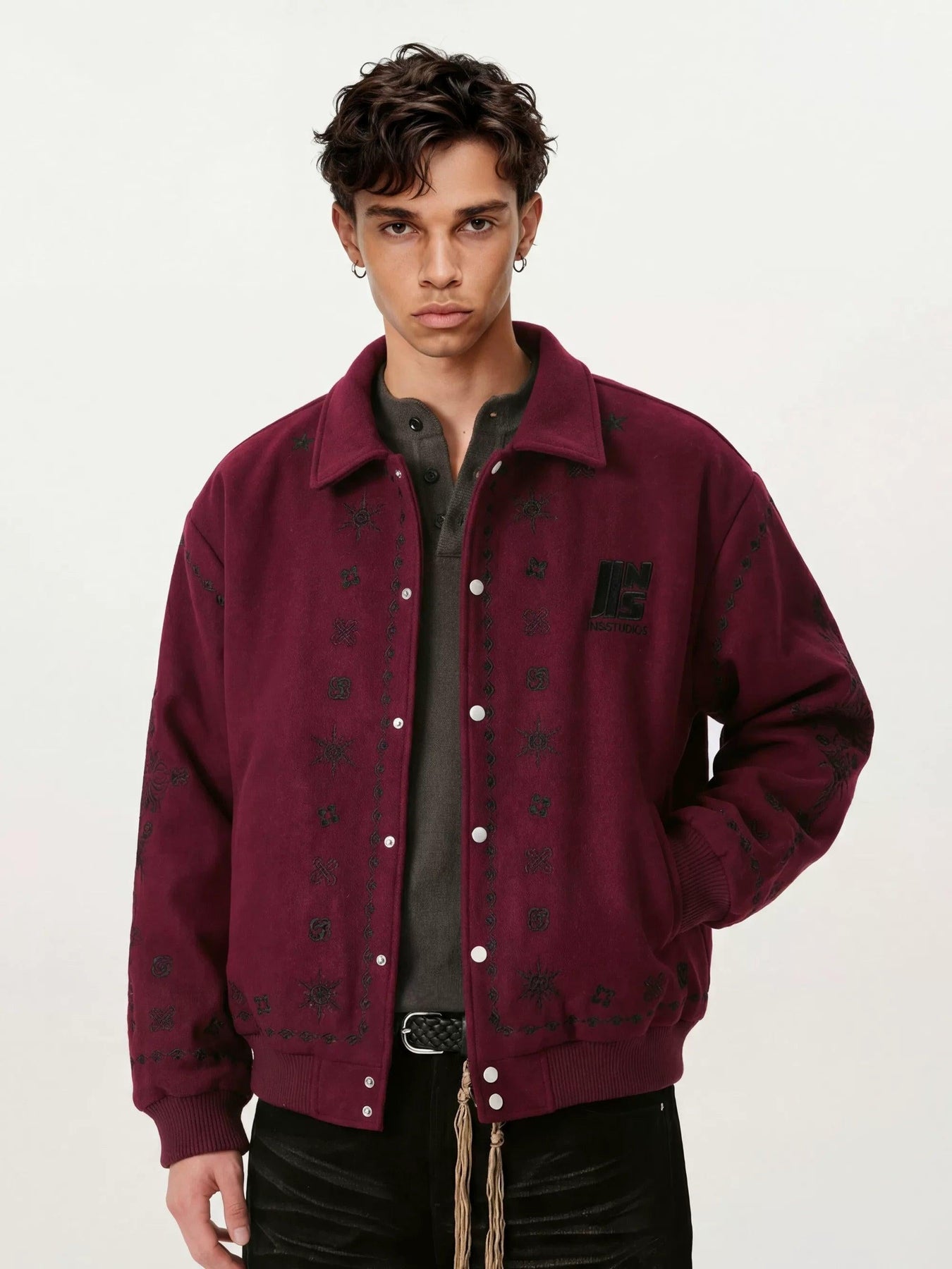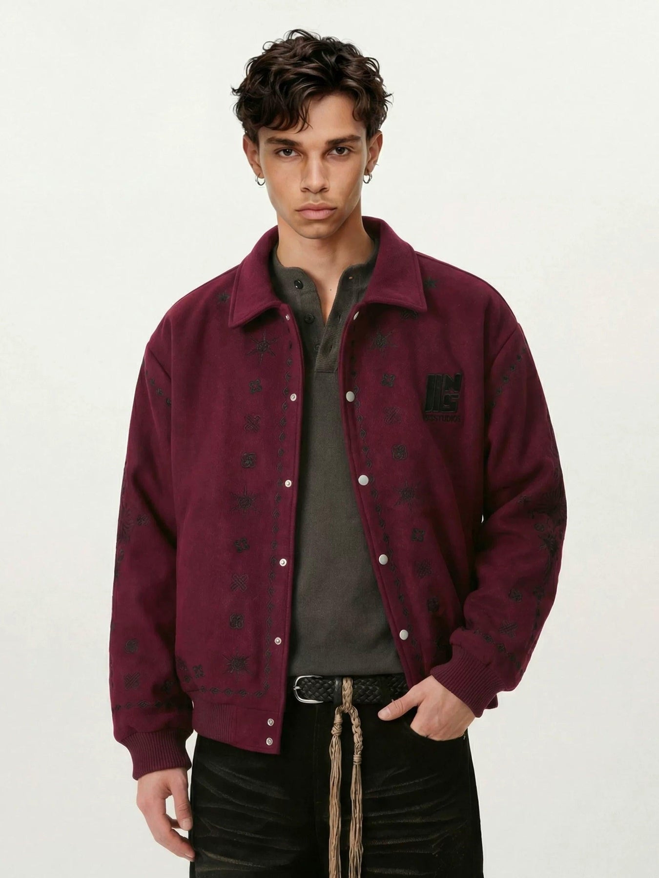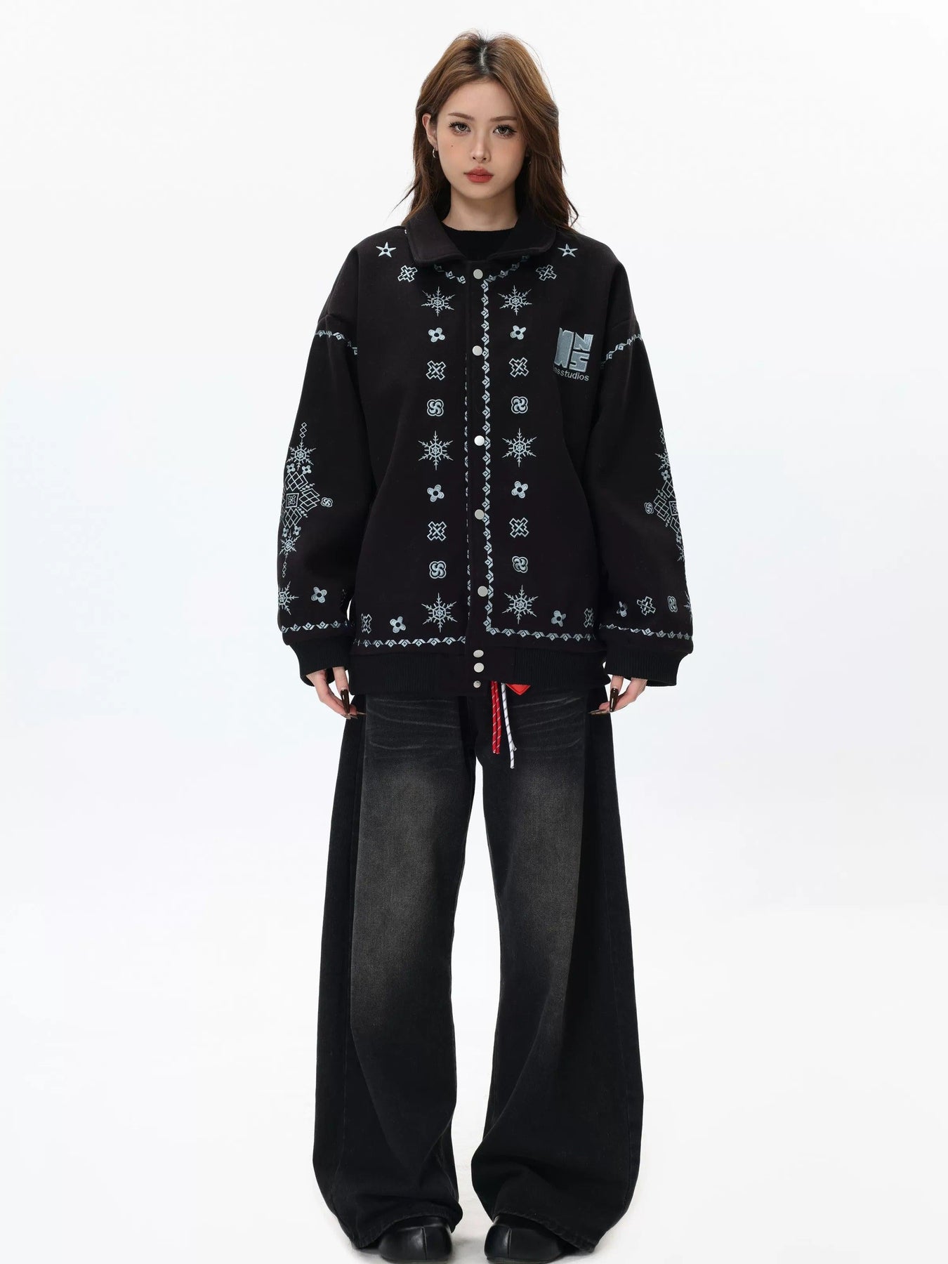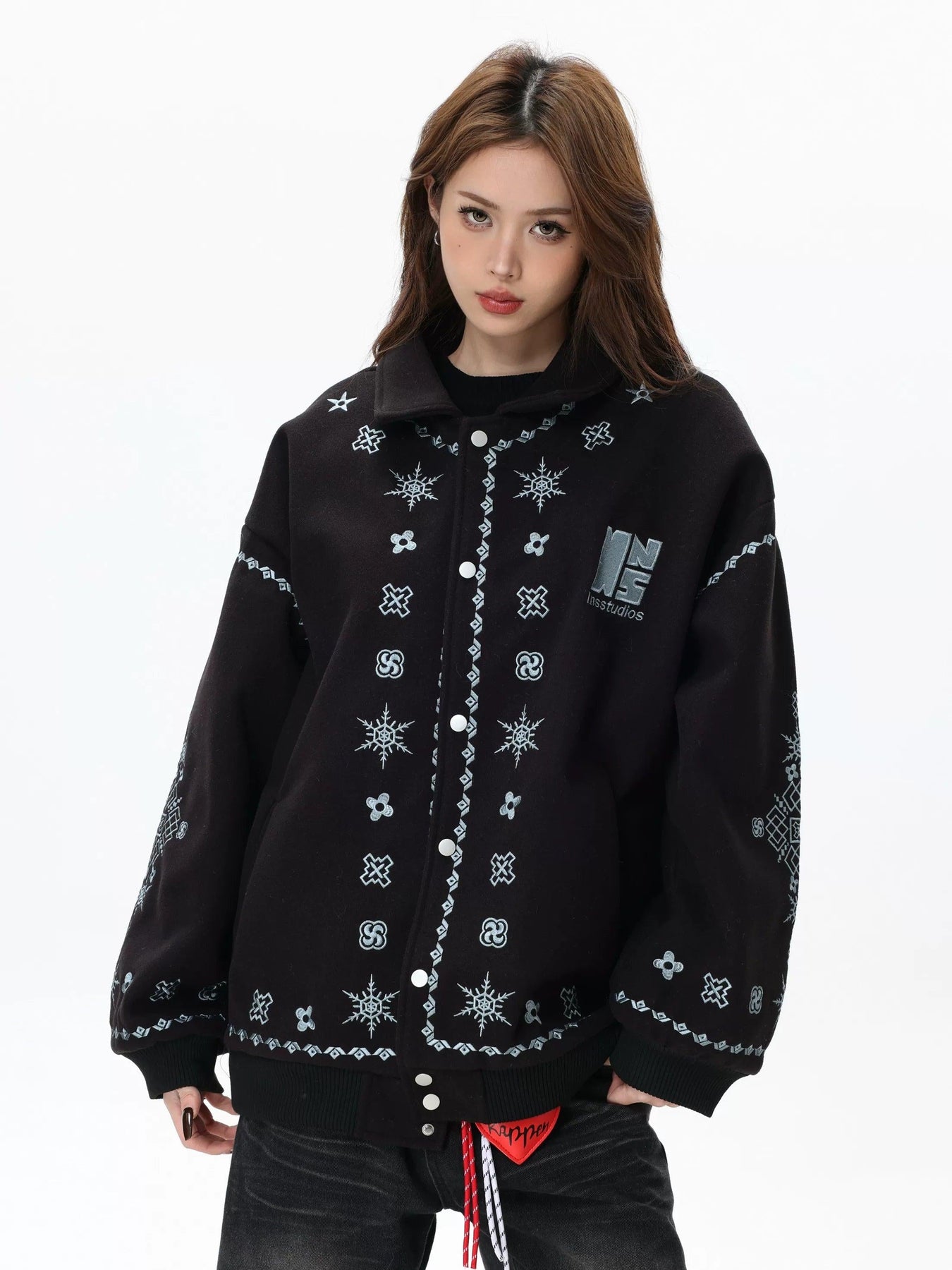 Icon Pattern Stitch Buttoned Jacket