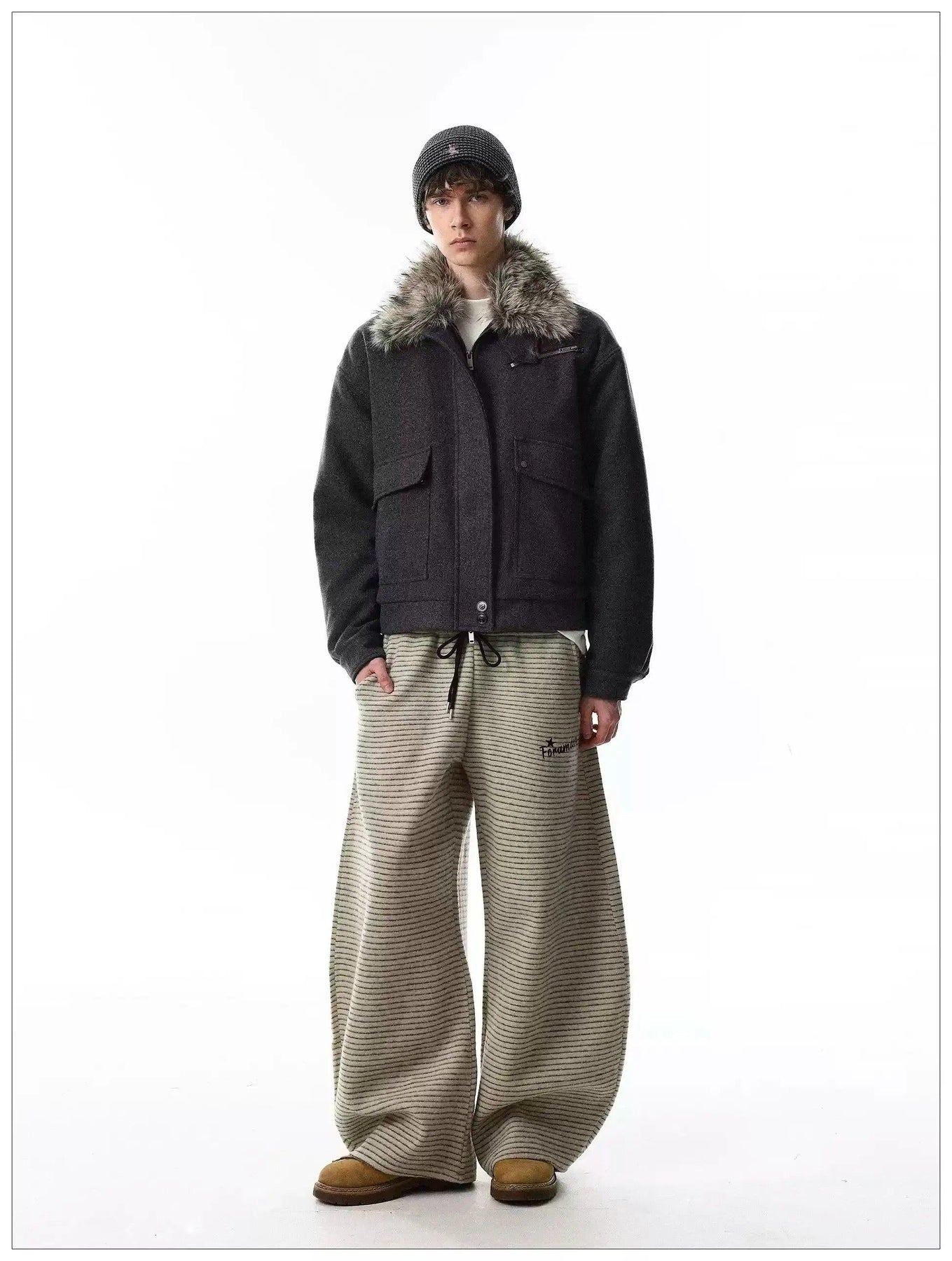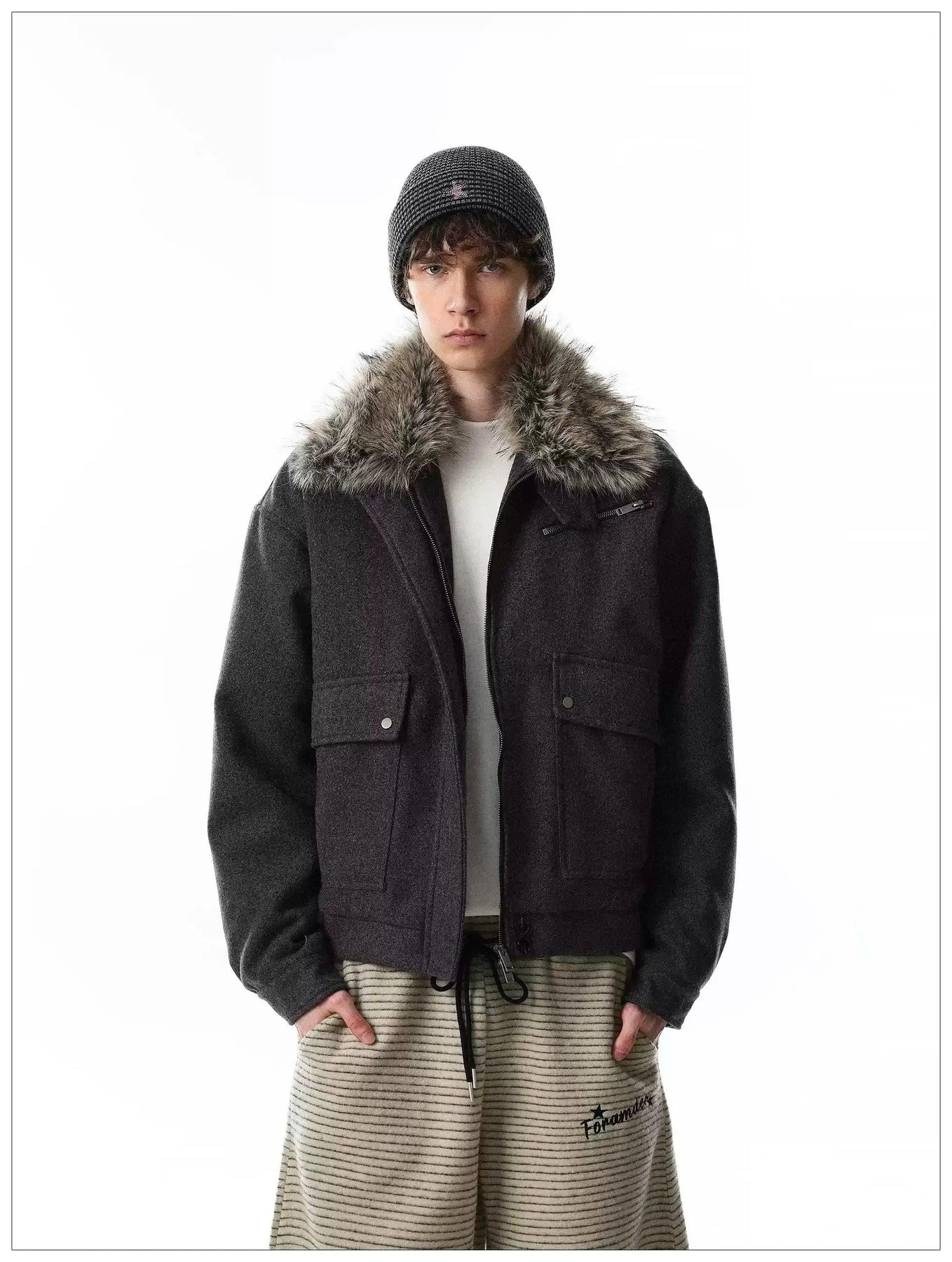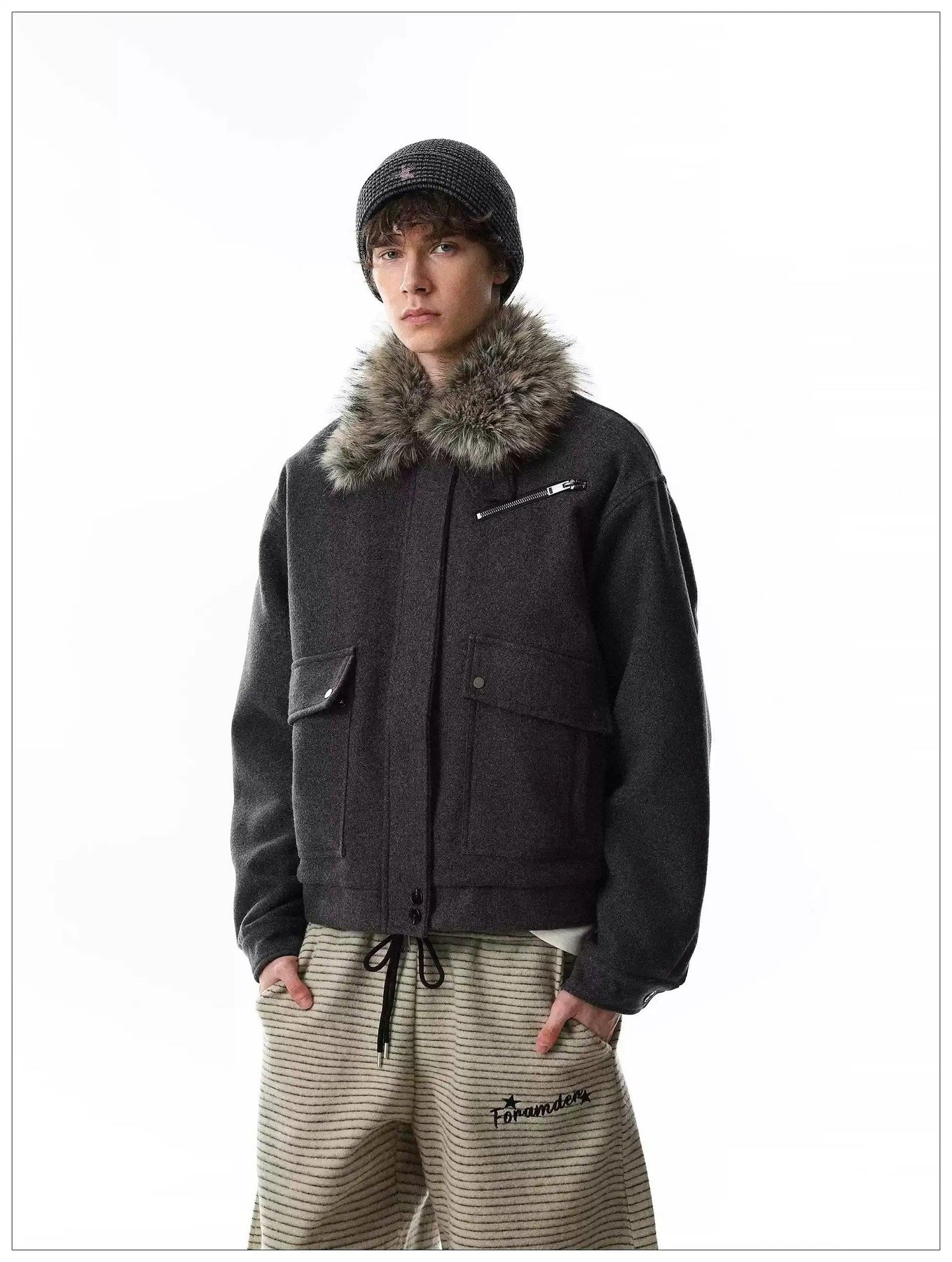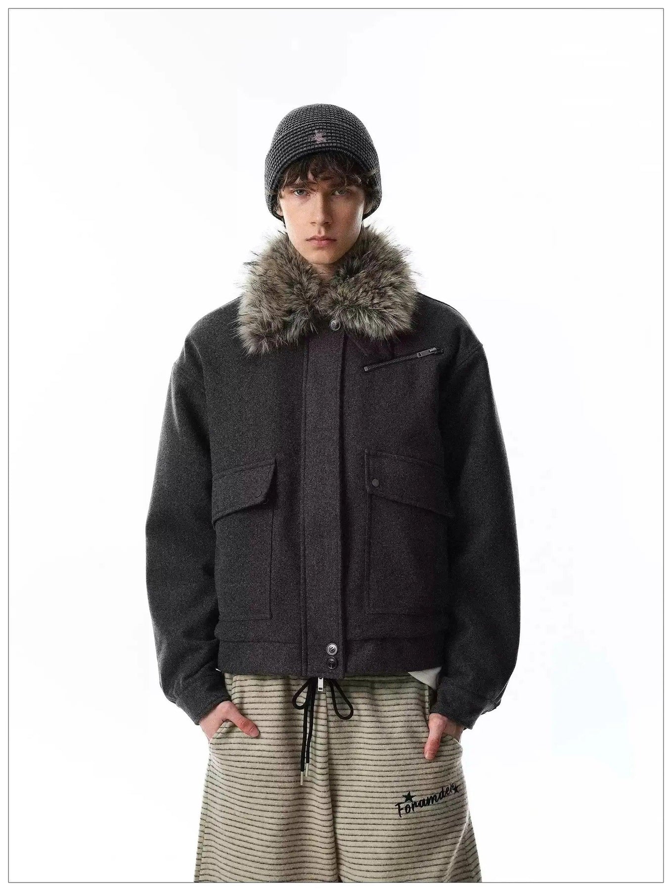 Faux Fur Collar Big Pockets Jacket