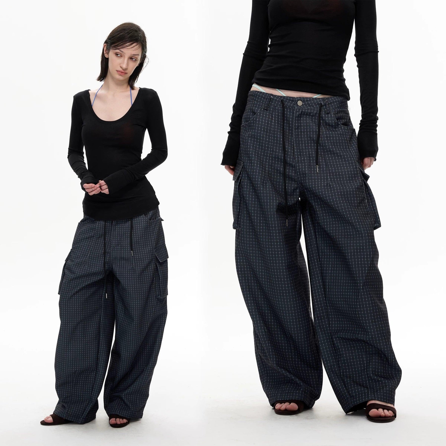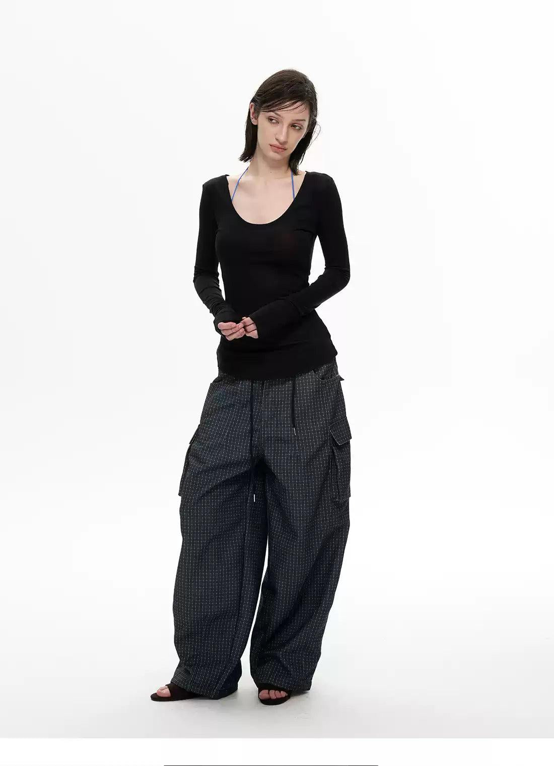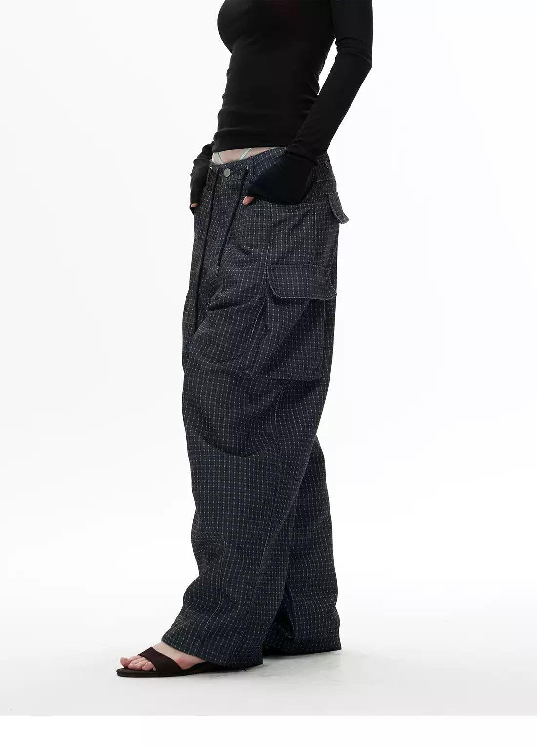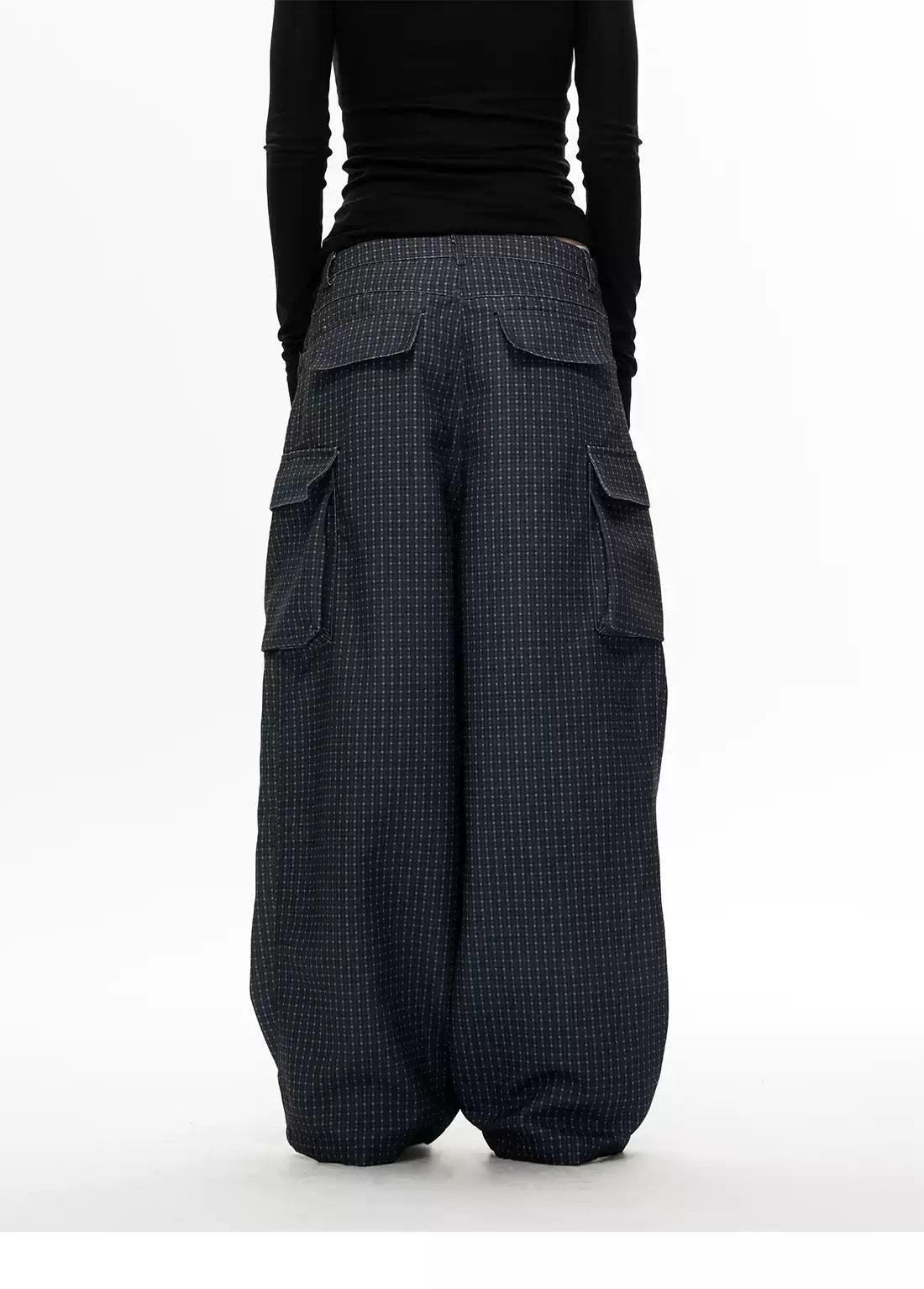 Embossed Pockets Patterned Barrel Pants