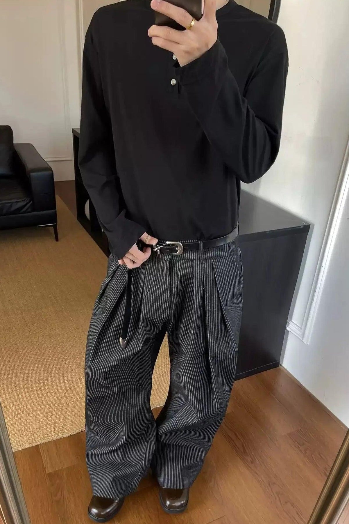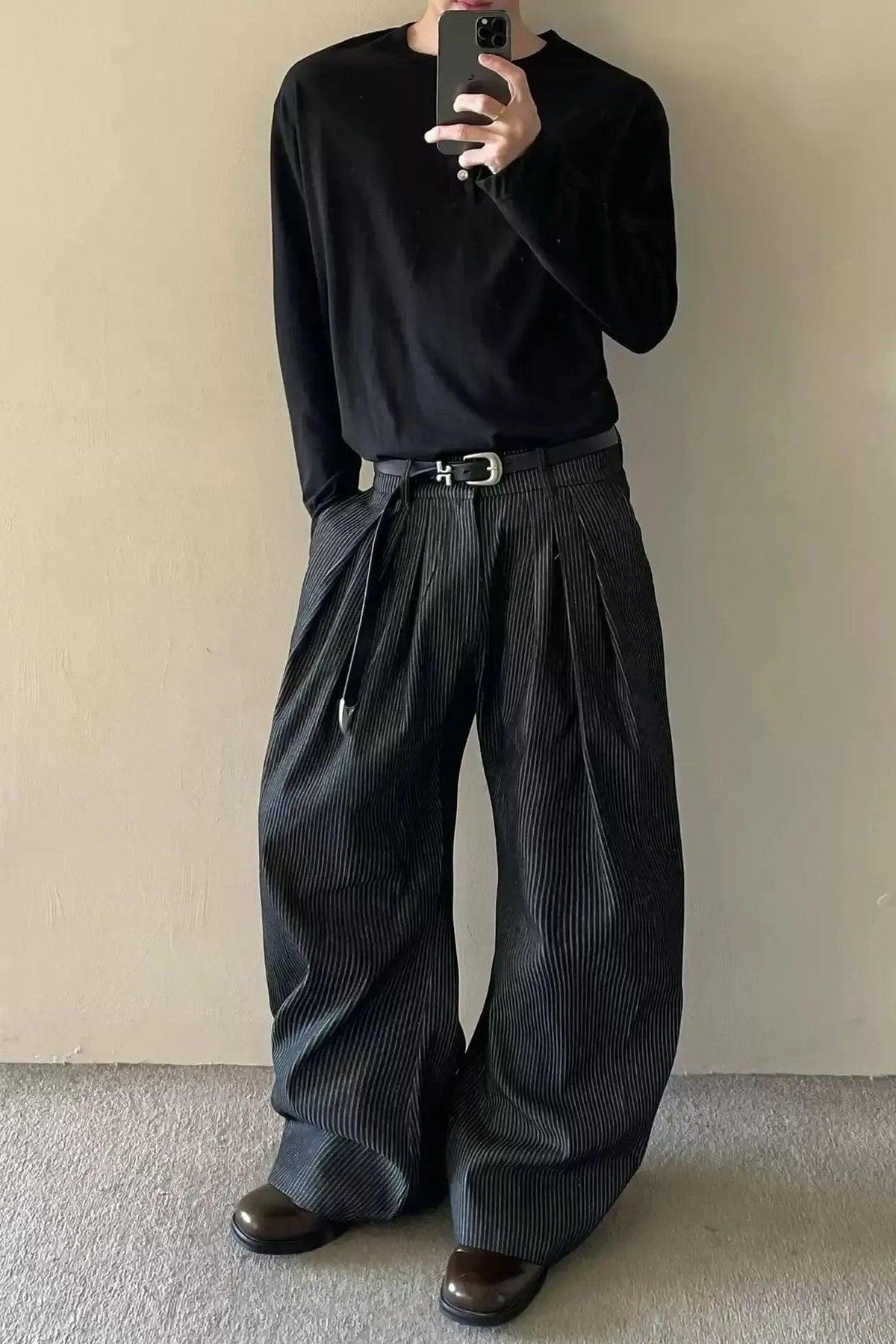 Pleated Striped Wide Leg Pants