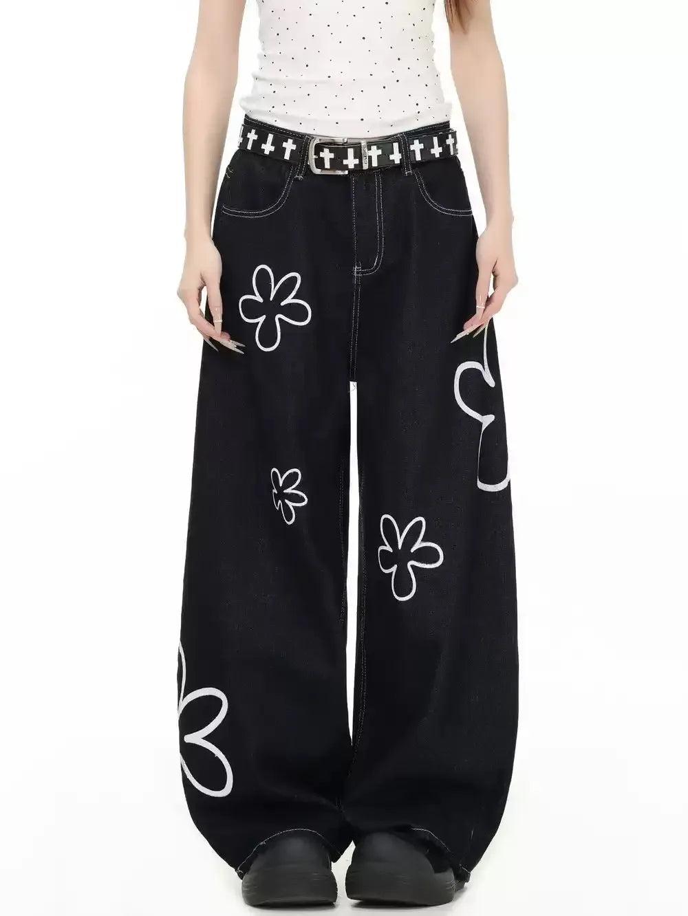 Flower Cartoon Drawing Jeans