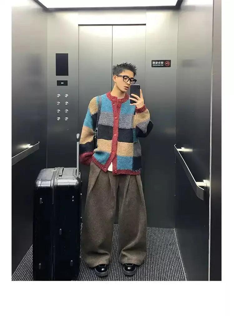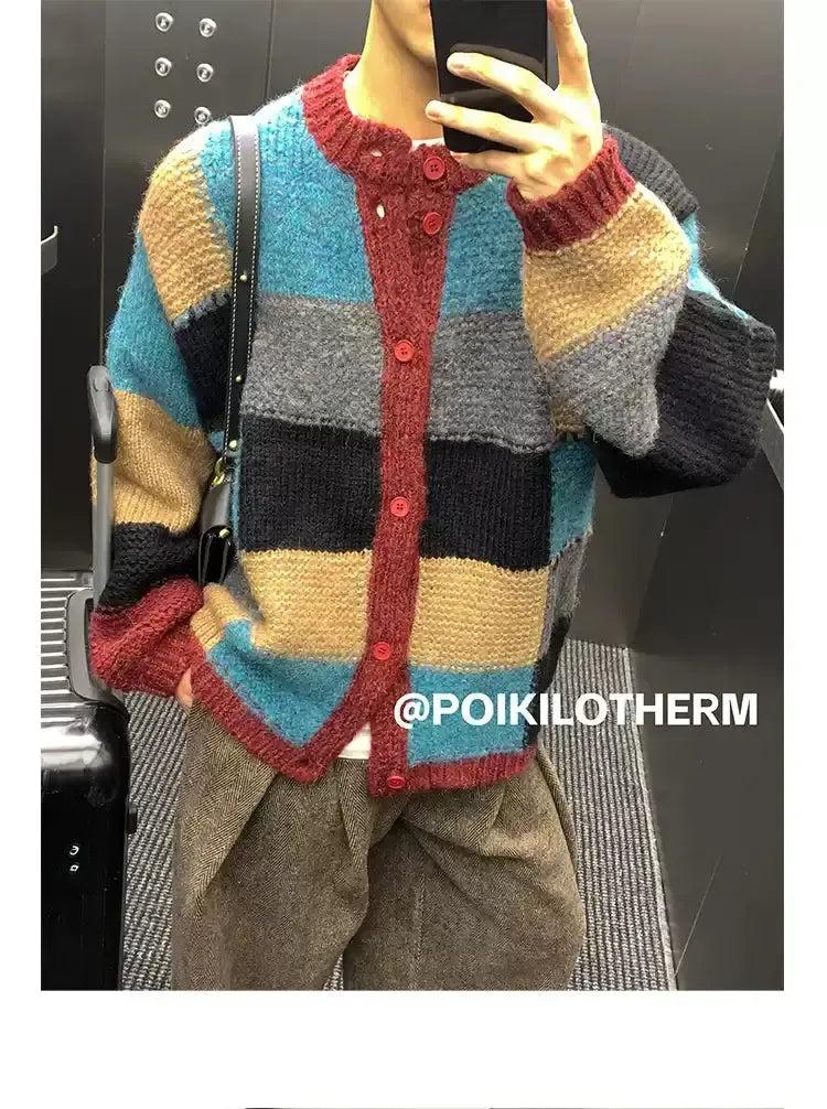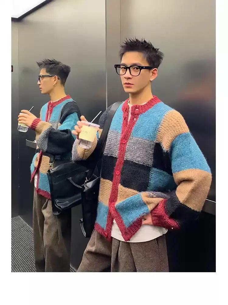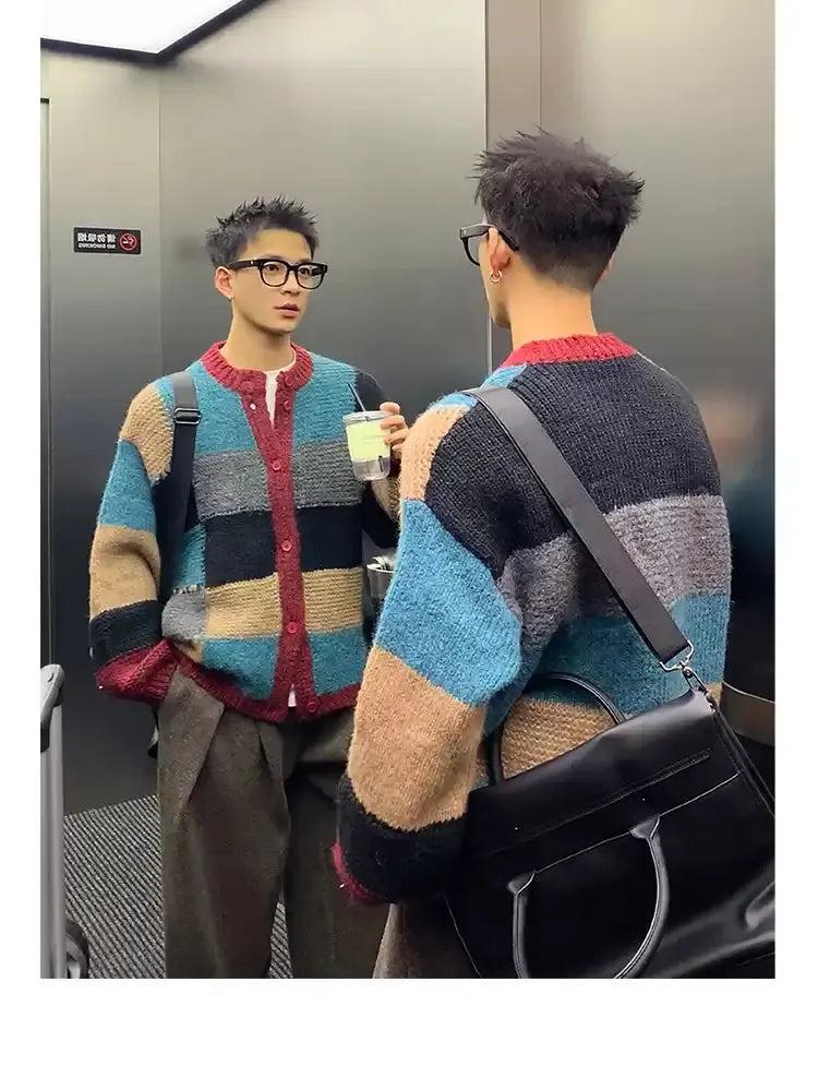 Contrast Color Block Knit Cardigan