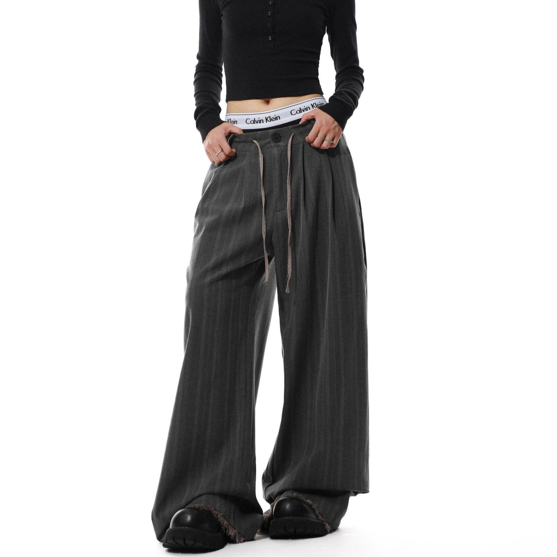 Drawstring Vertical Striped Pants