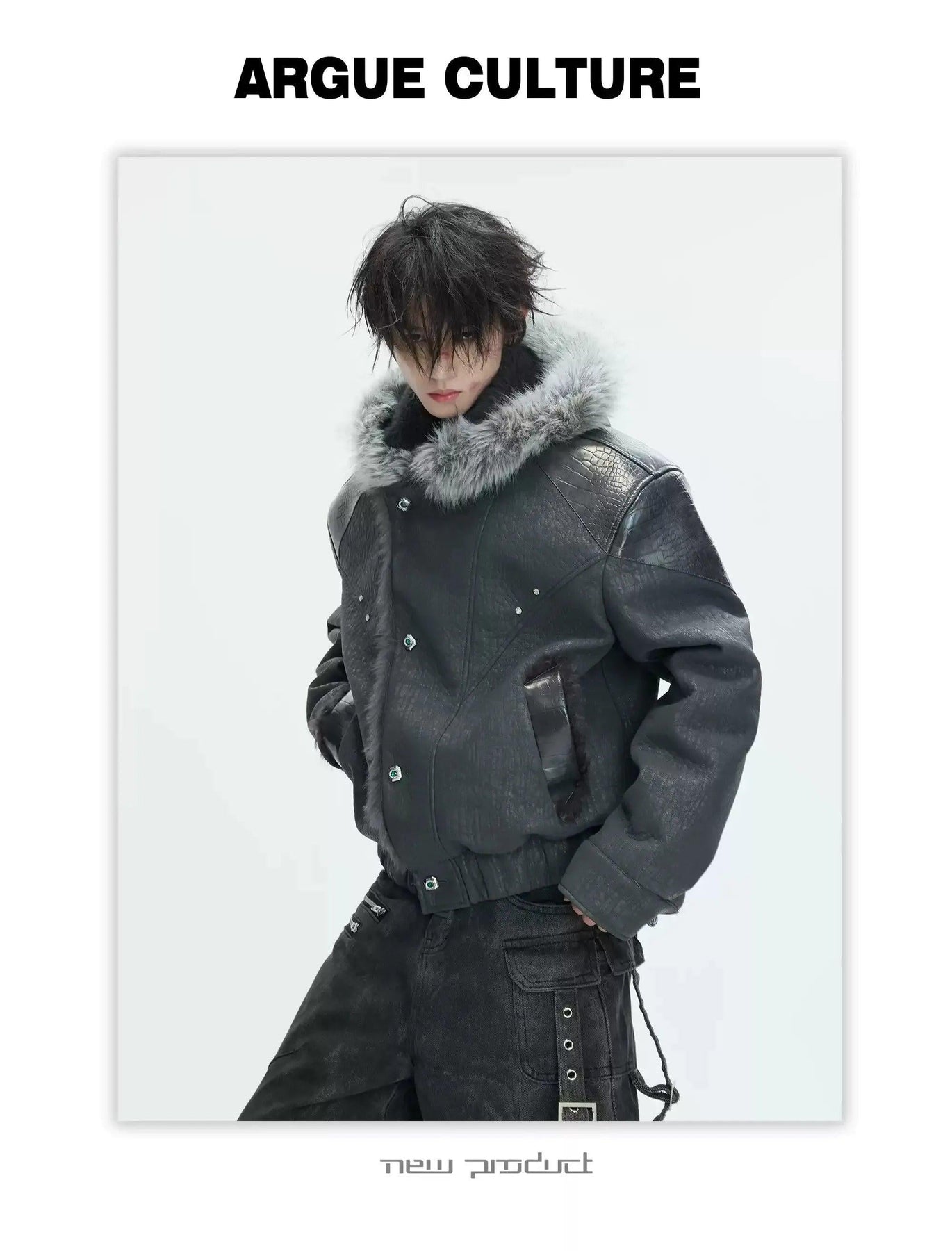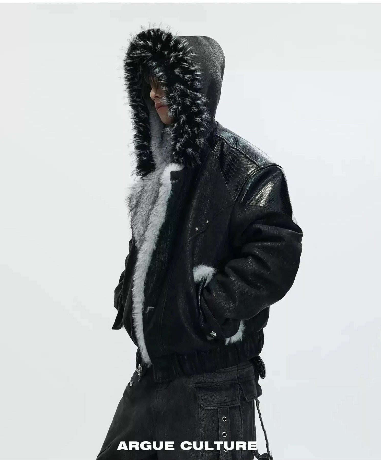 Faux Fur Hood Textured Spliced Jacket
