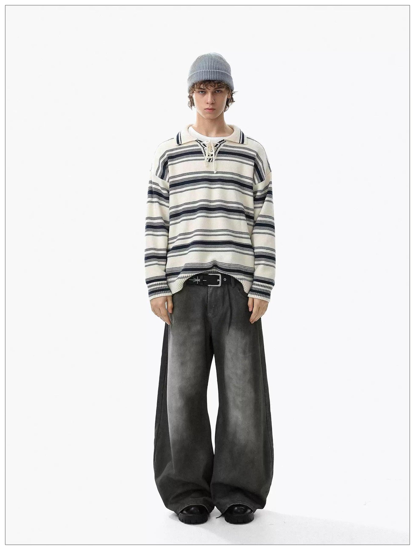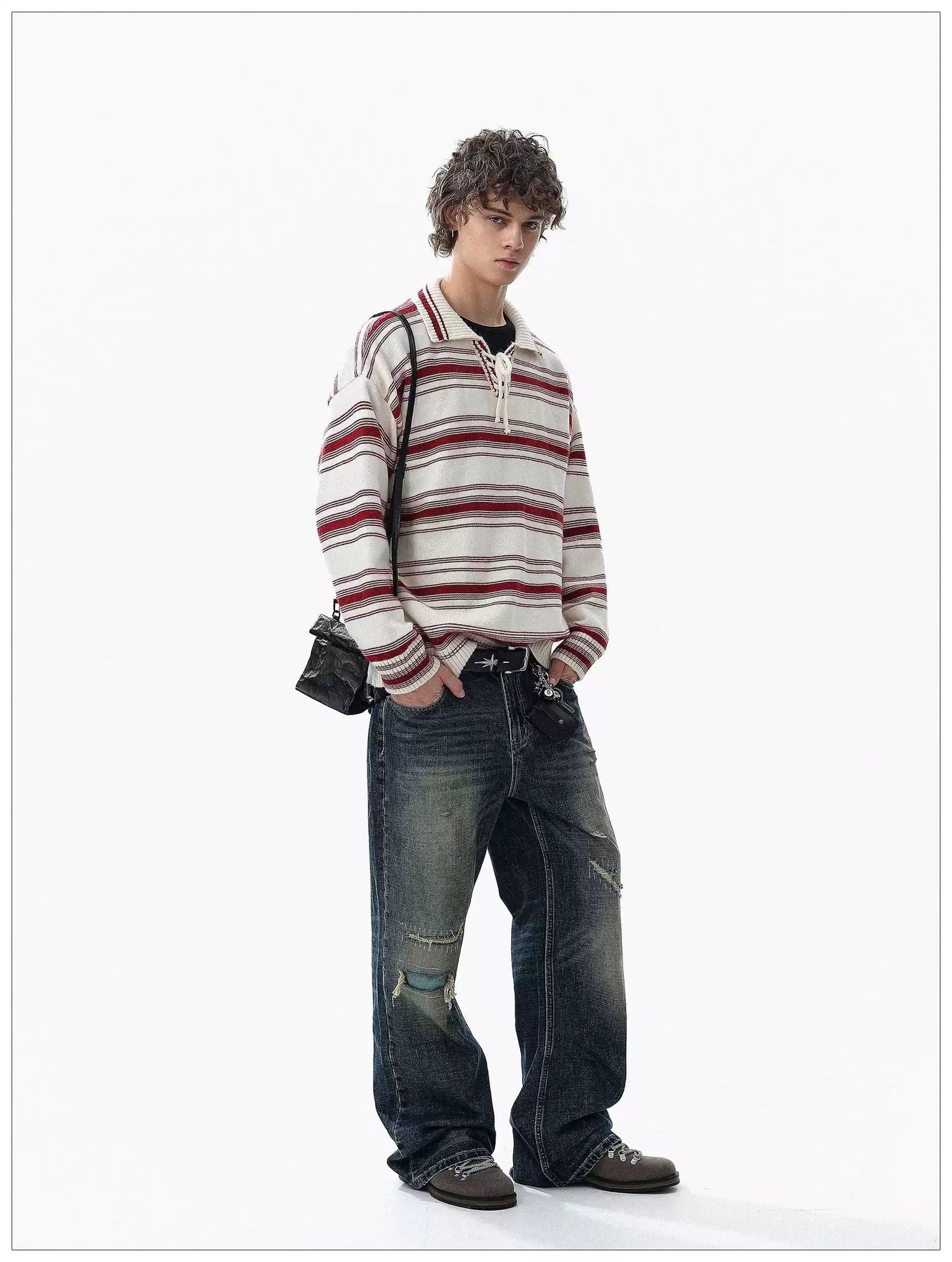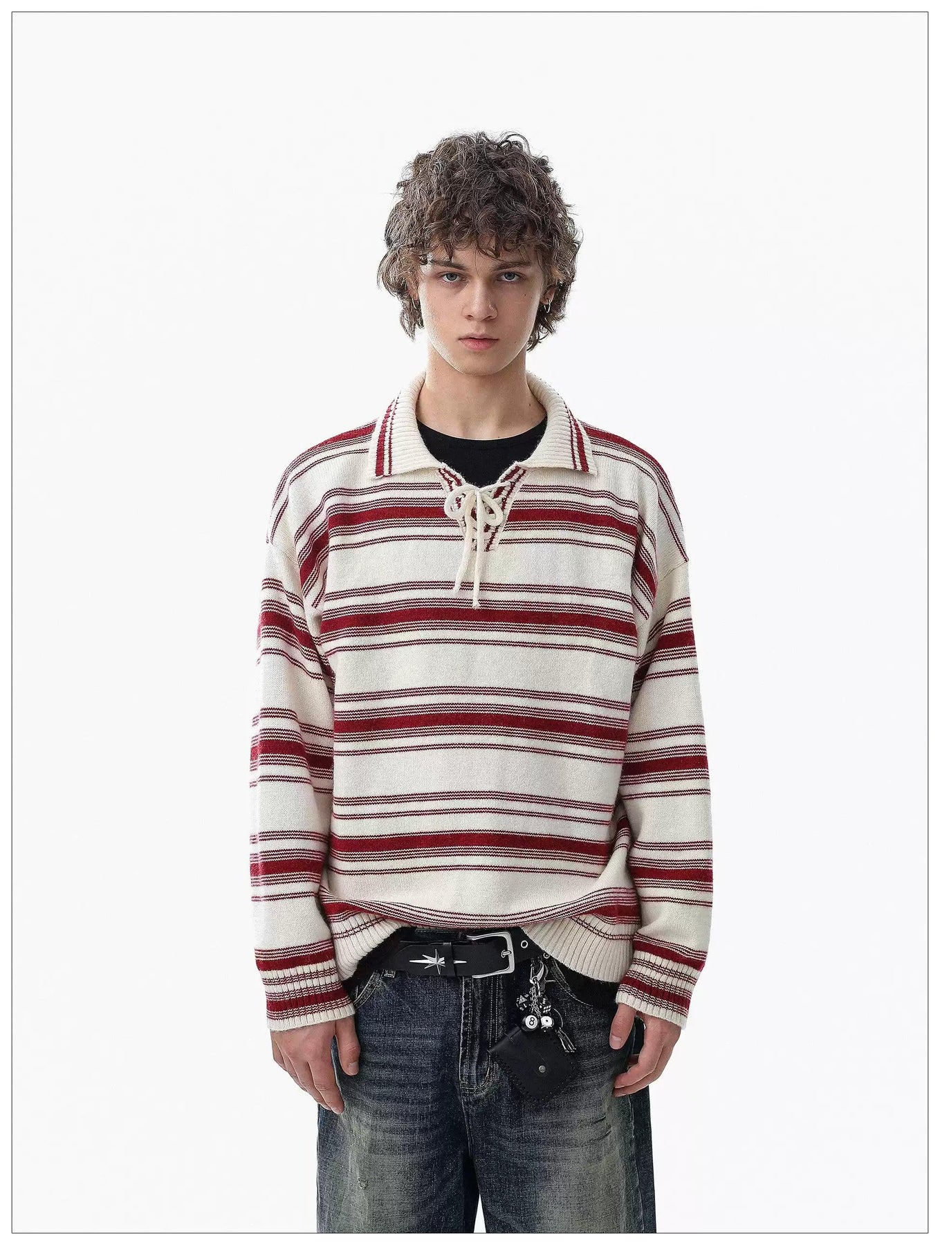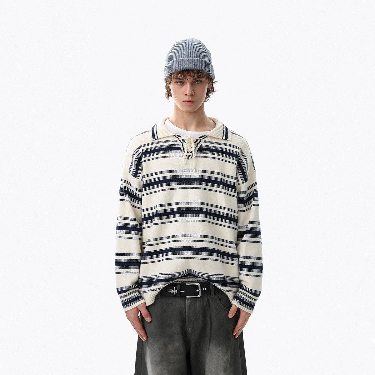 Striped Lace Detail Knit Polo