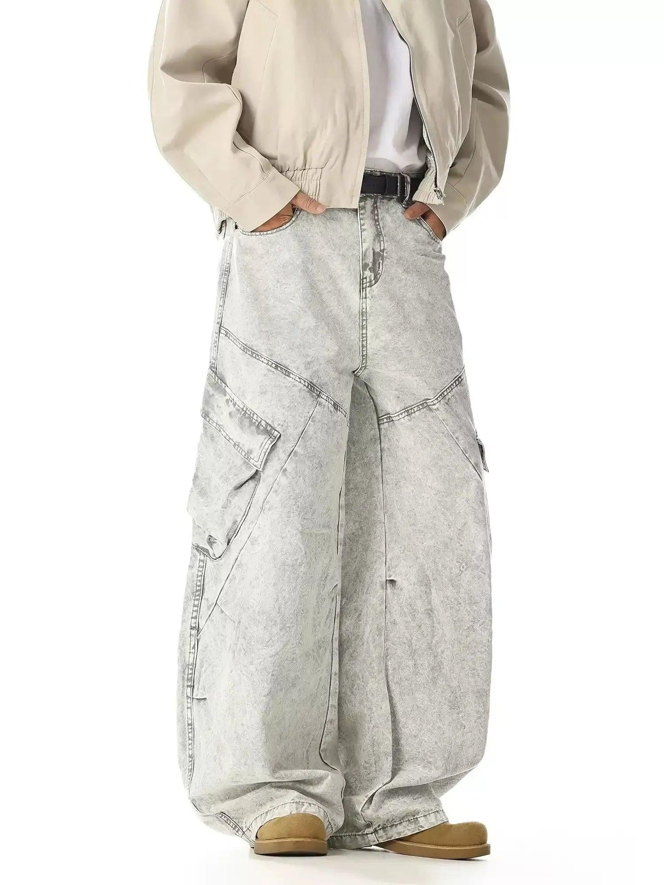 Tilt Pockets Washed Cargo Jeans