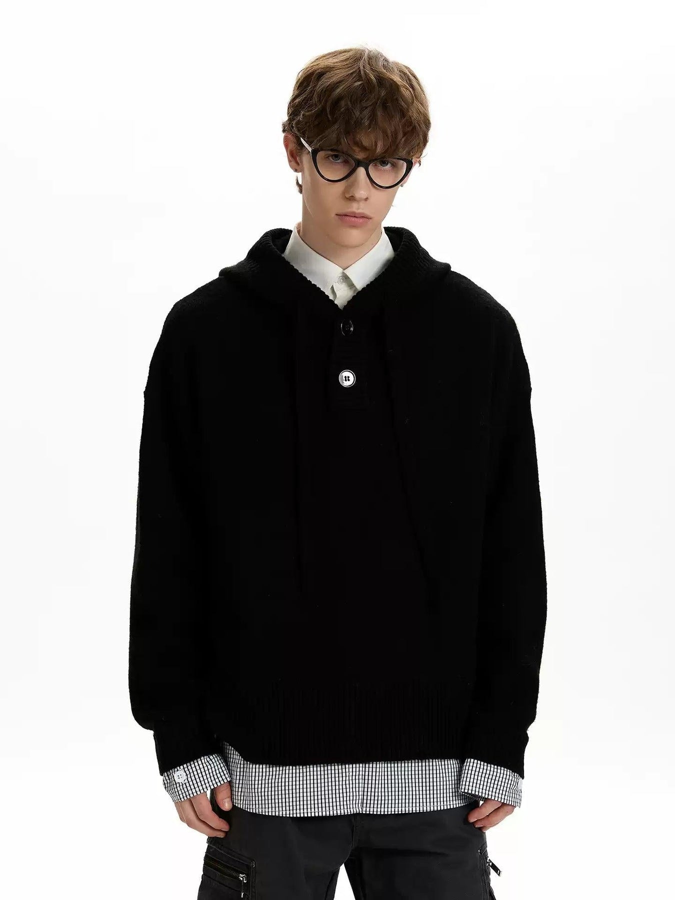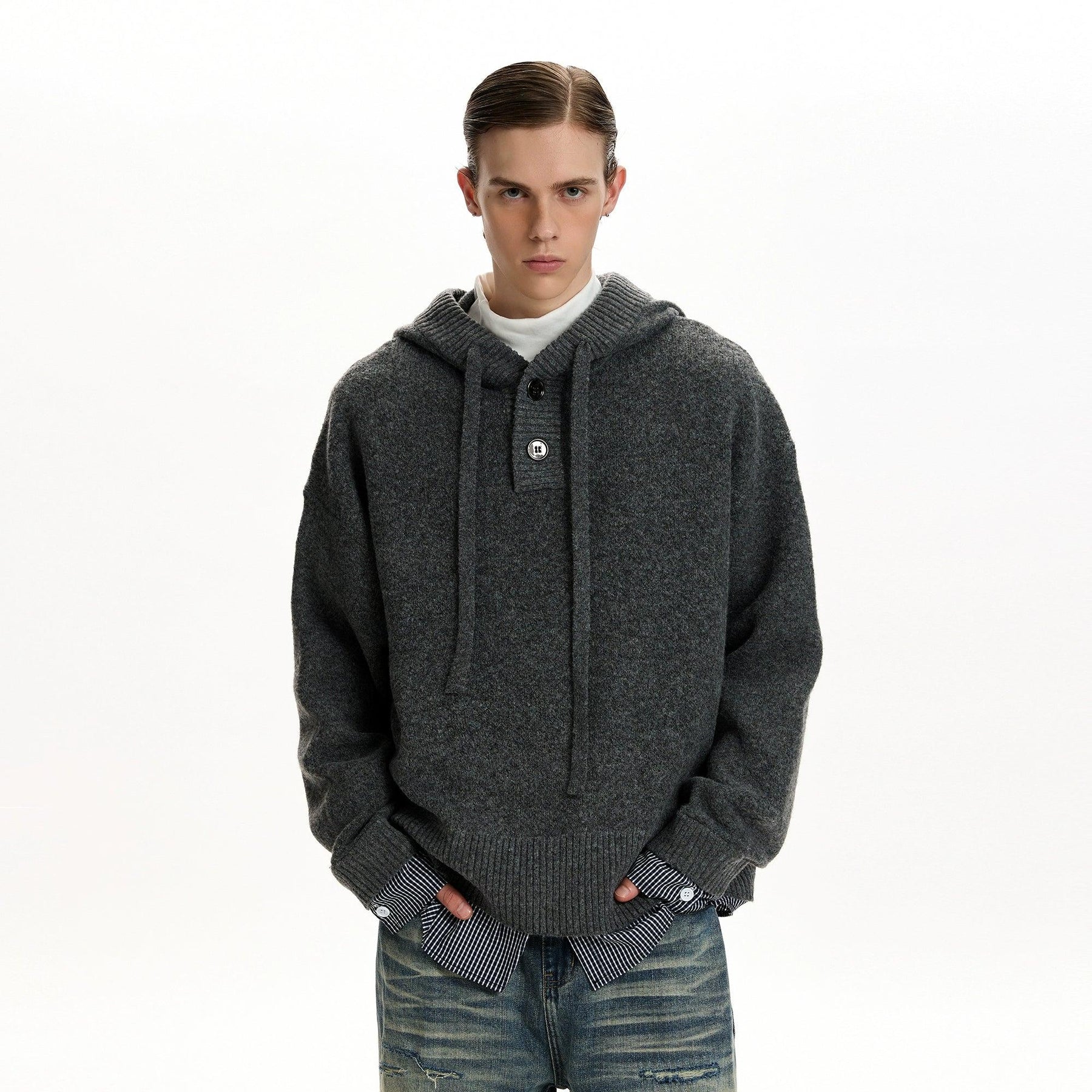 Pull String Half-Buttoned Hood Sweater
