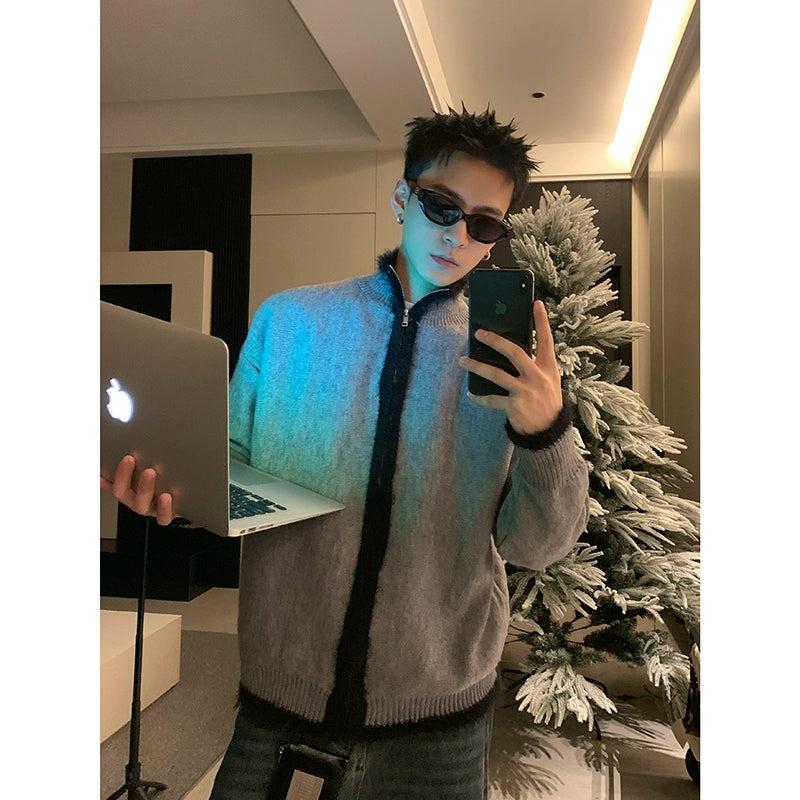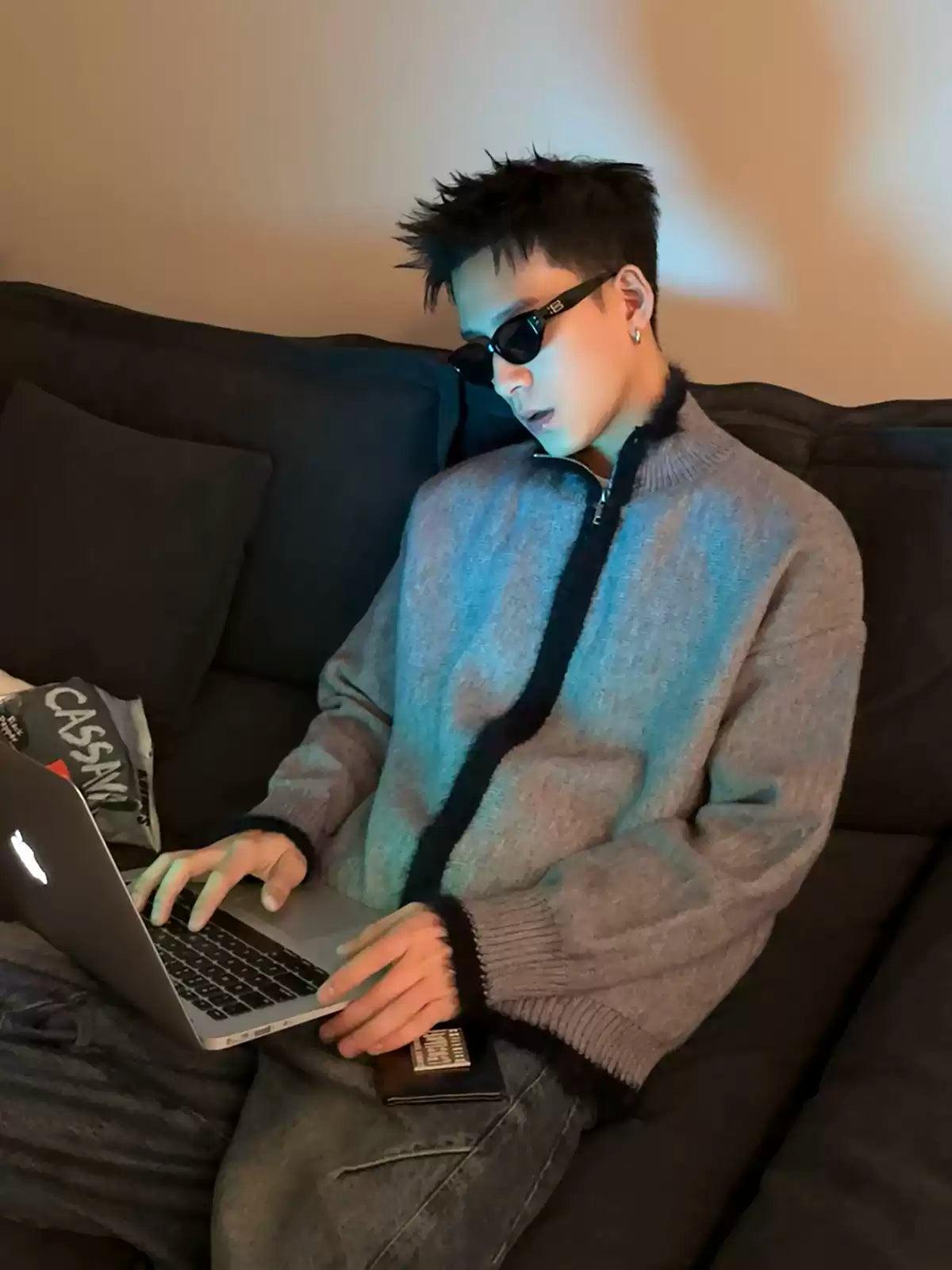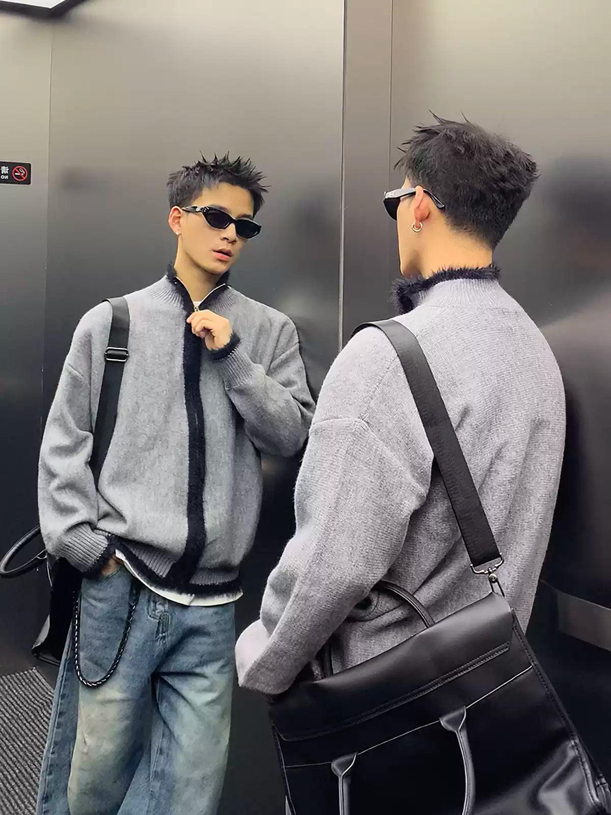 Contrast Line Full-Zip Sweater