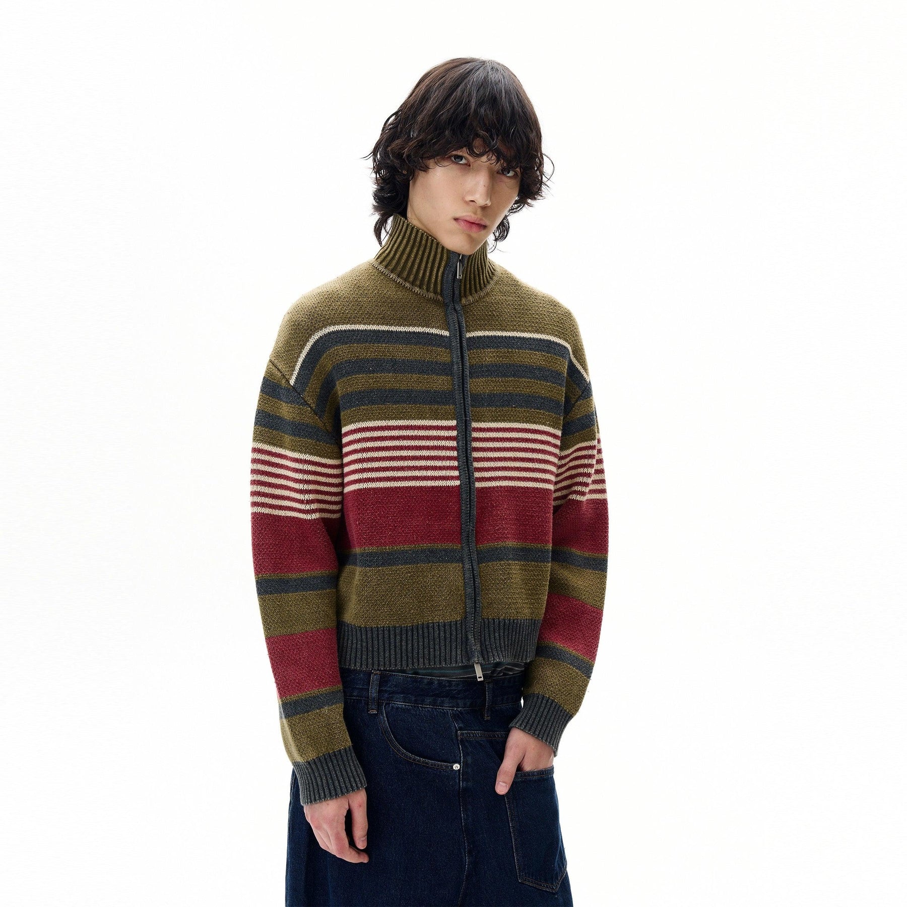 Stand Collar Striped Knit Jacket