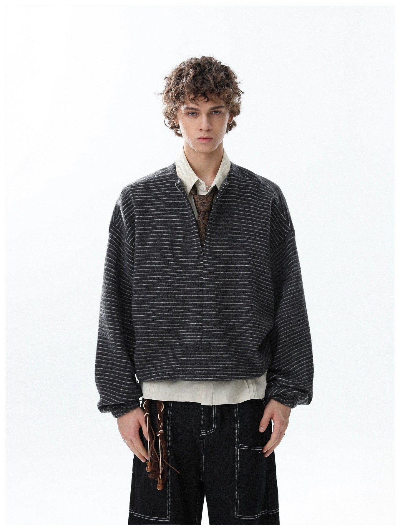 Thin Striped Clean Fit Half-Zip