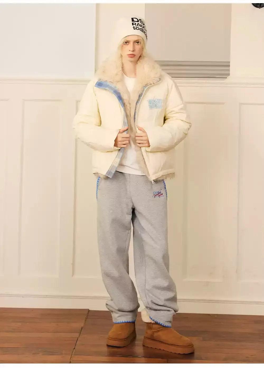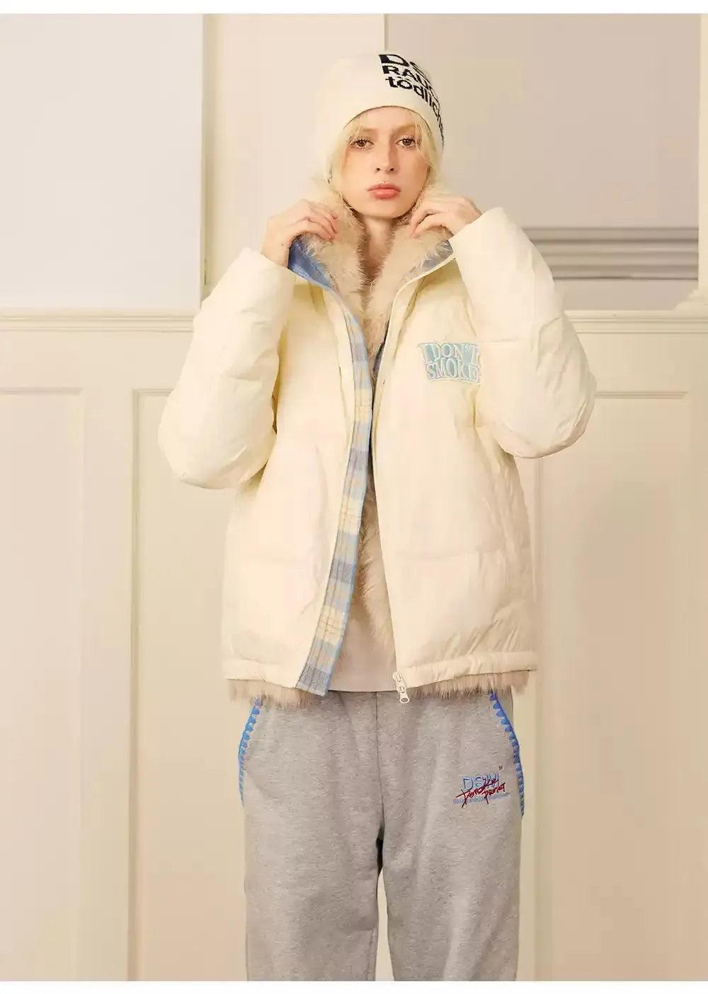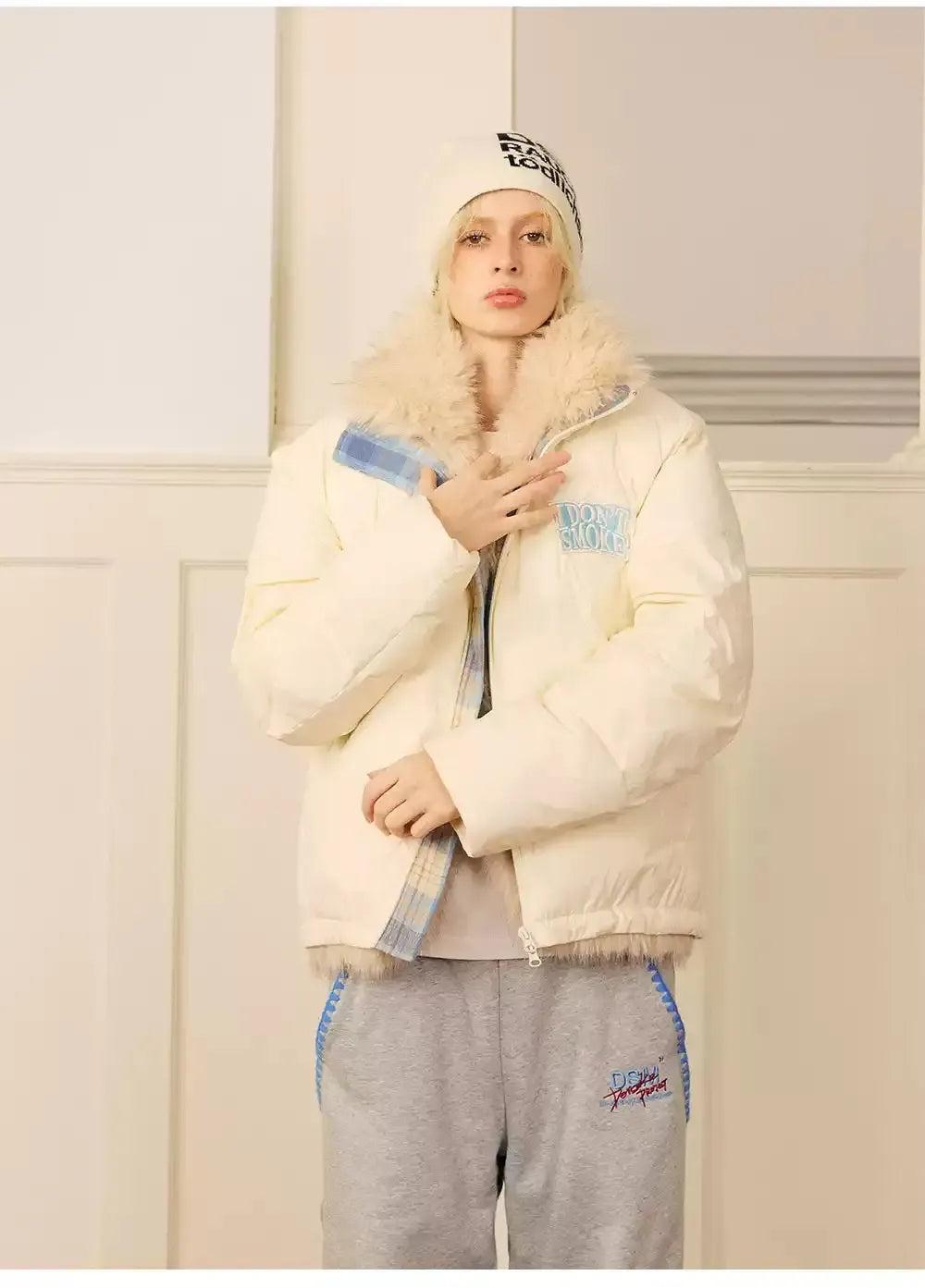 Plaid Contrast Fur Trimmed Jacket