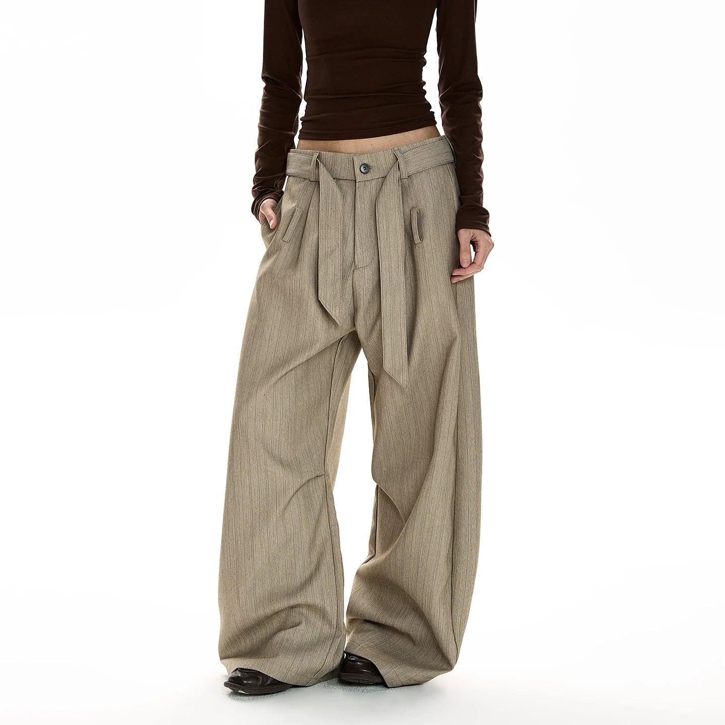 Cloth Belt Subtle Textured Trousers