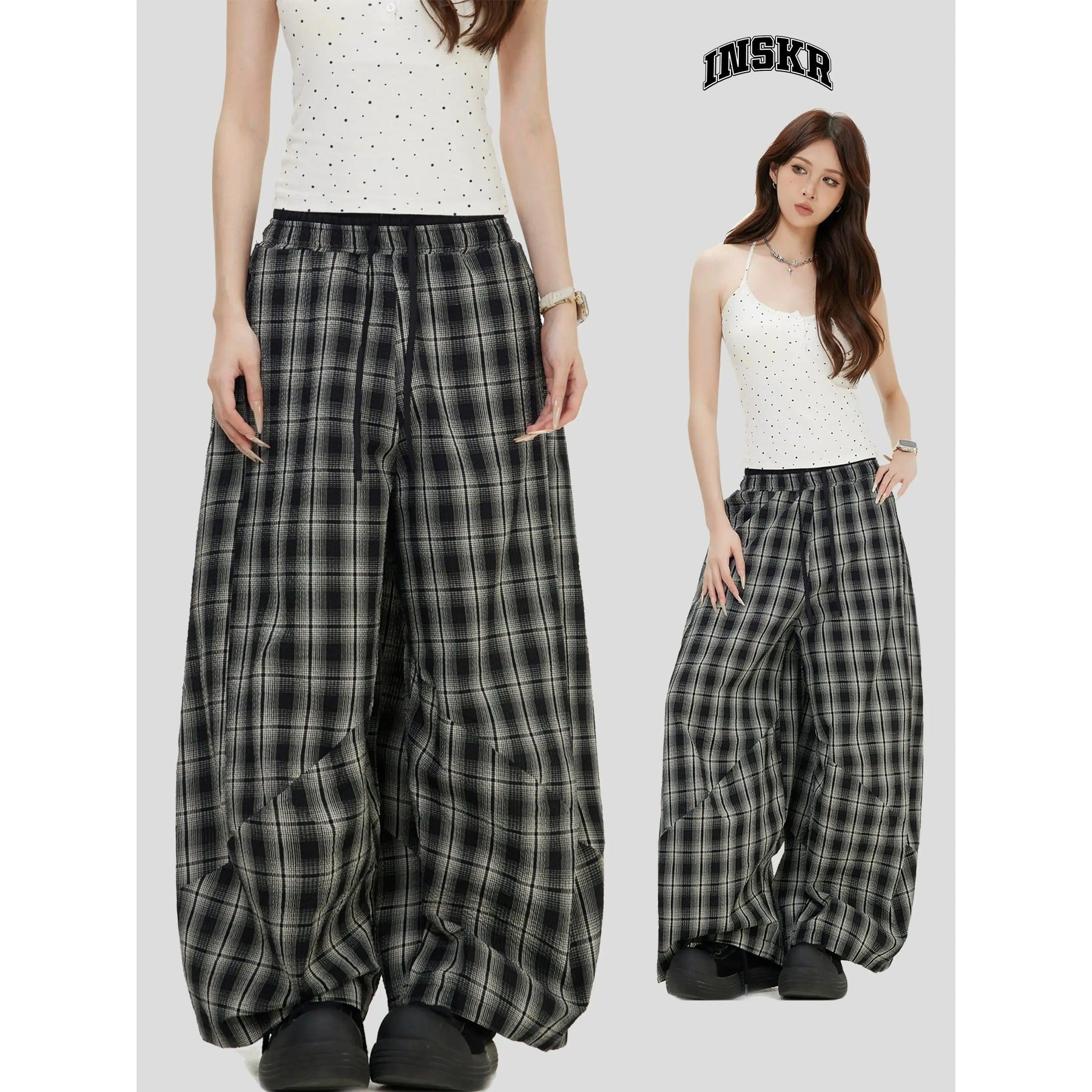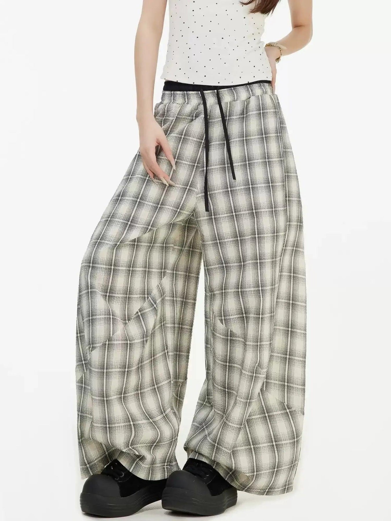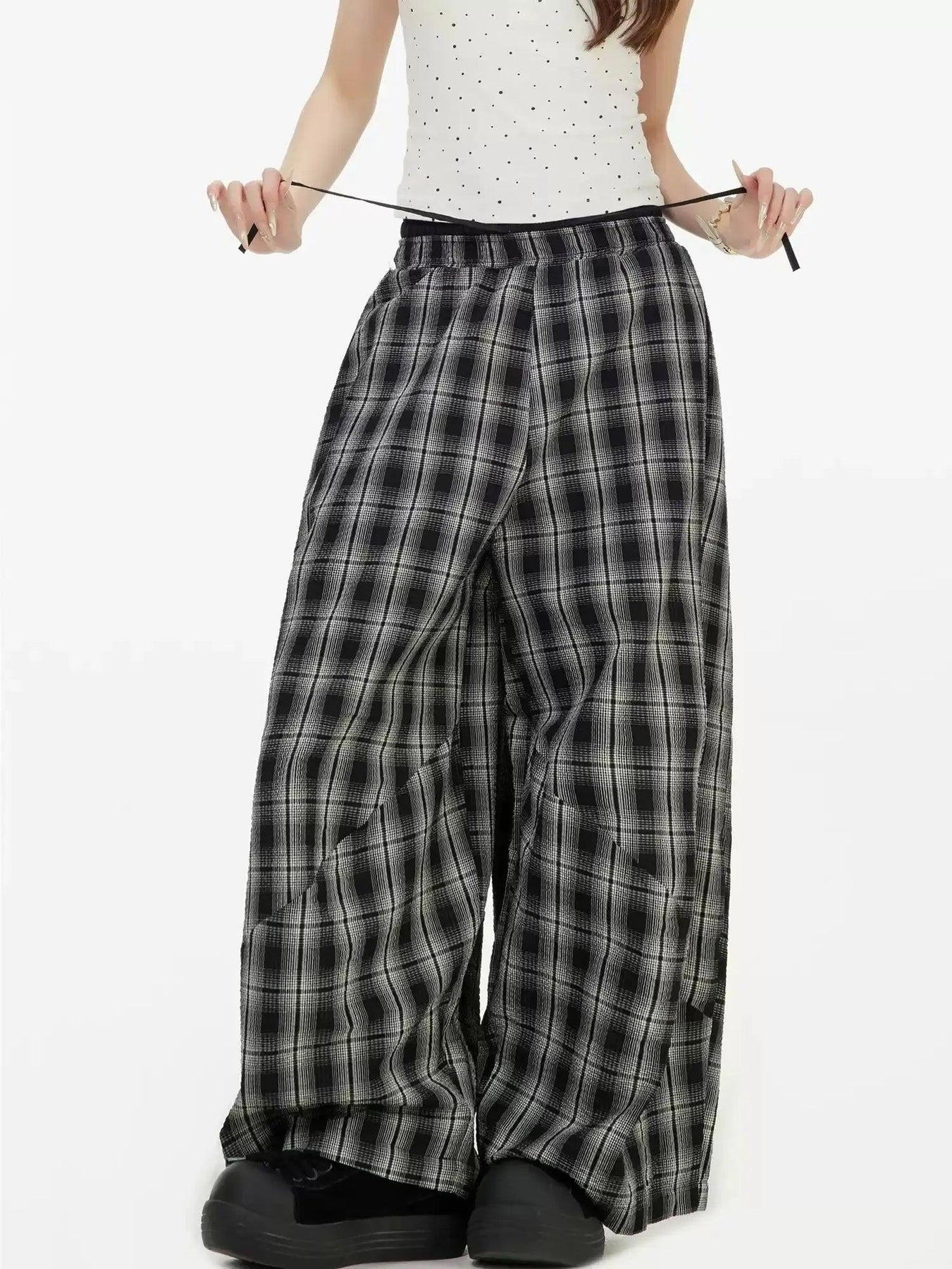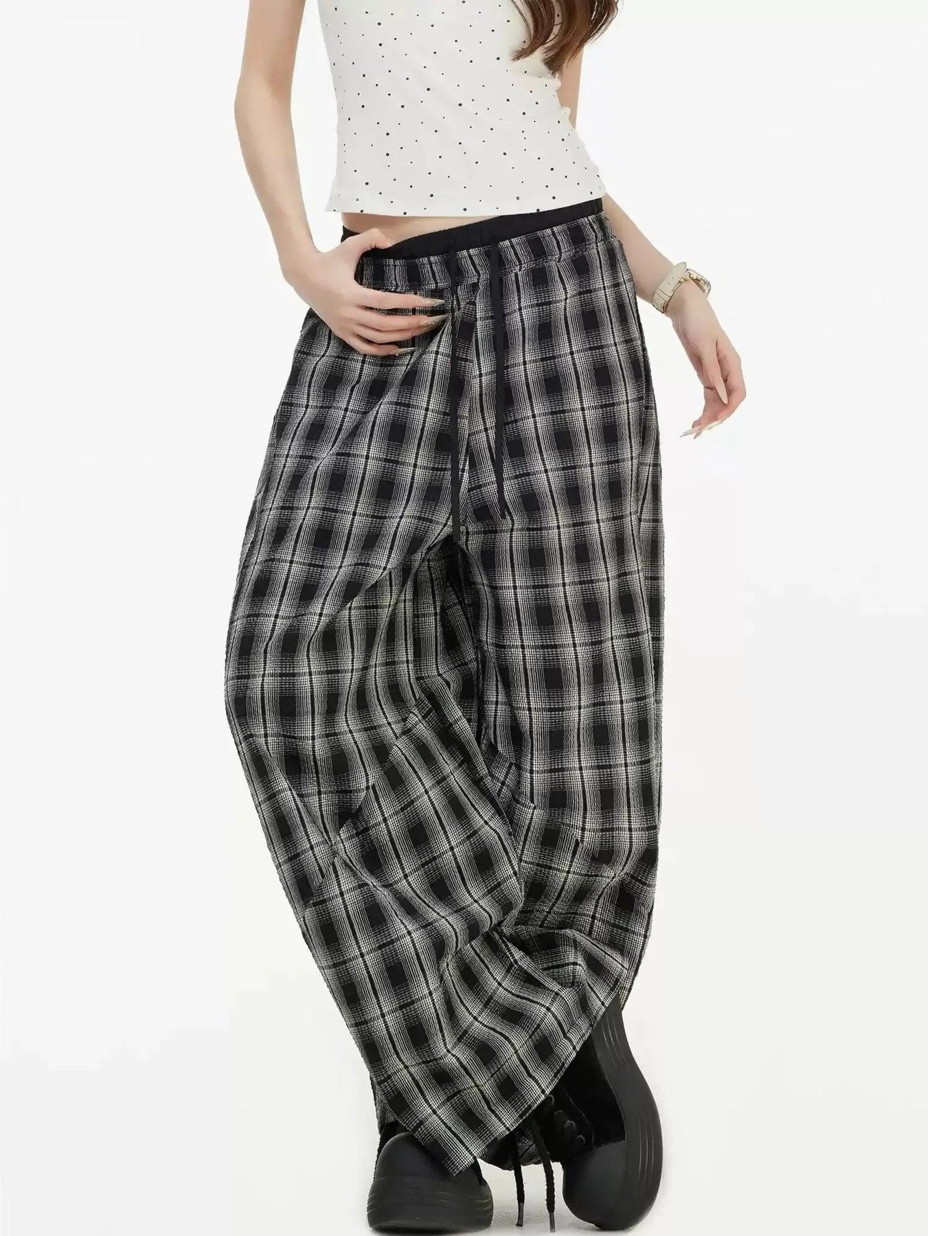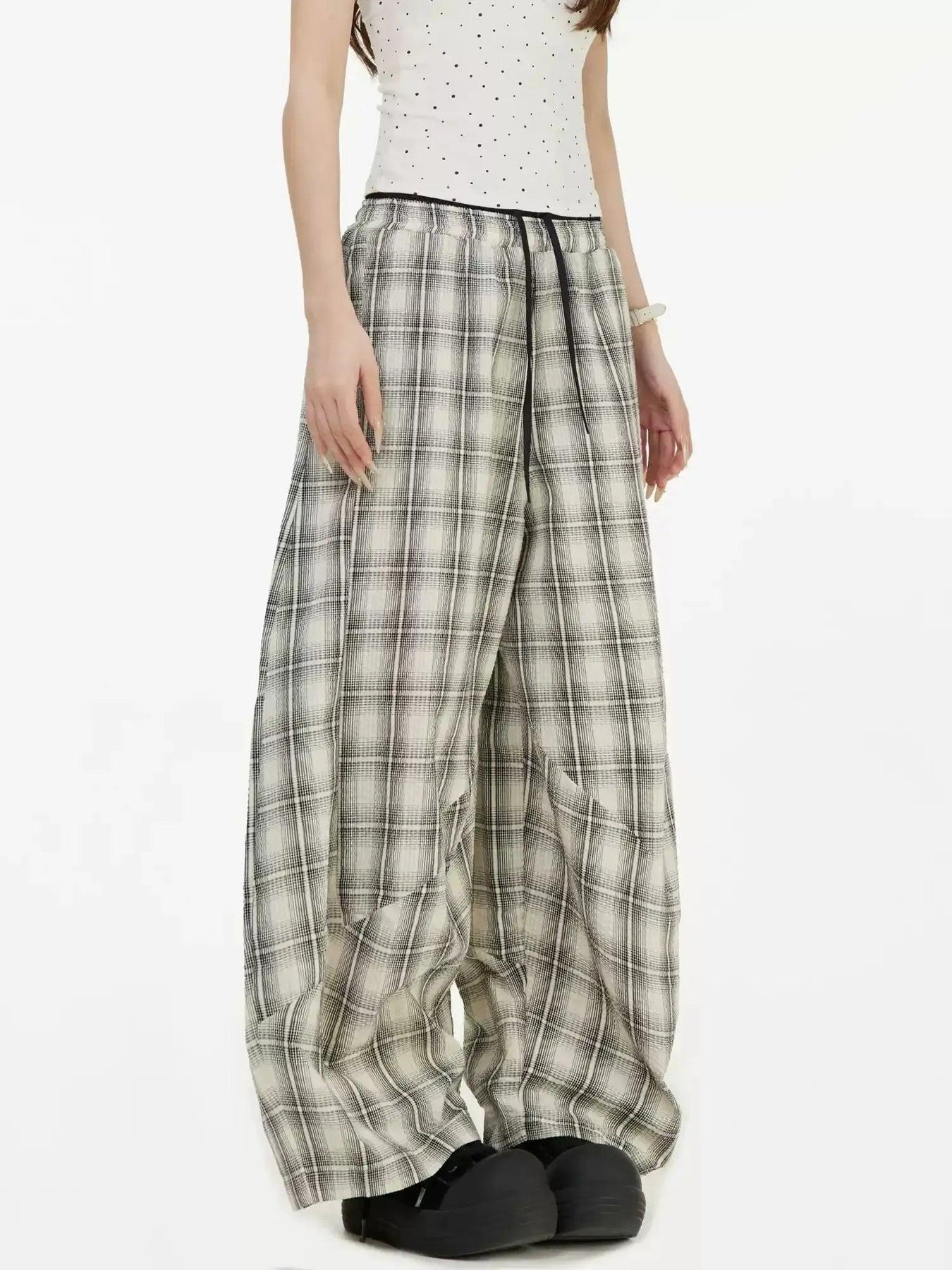 Patterned Plaid Wide Pants
