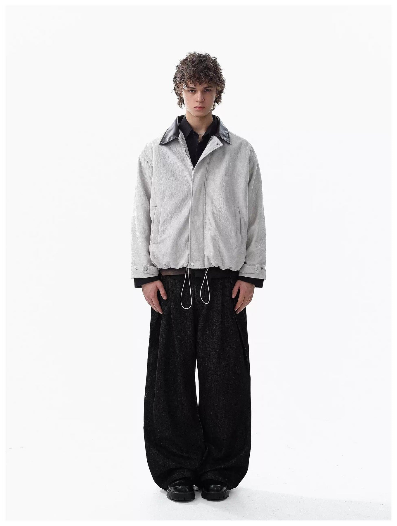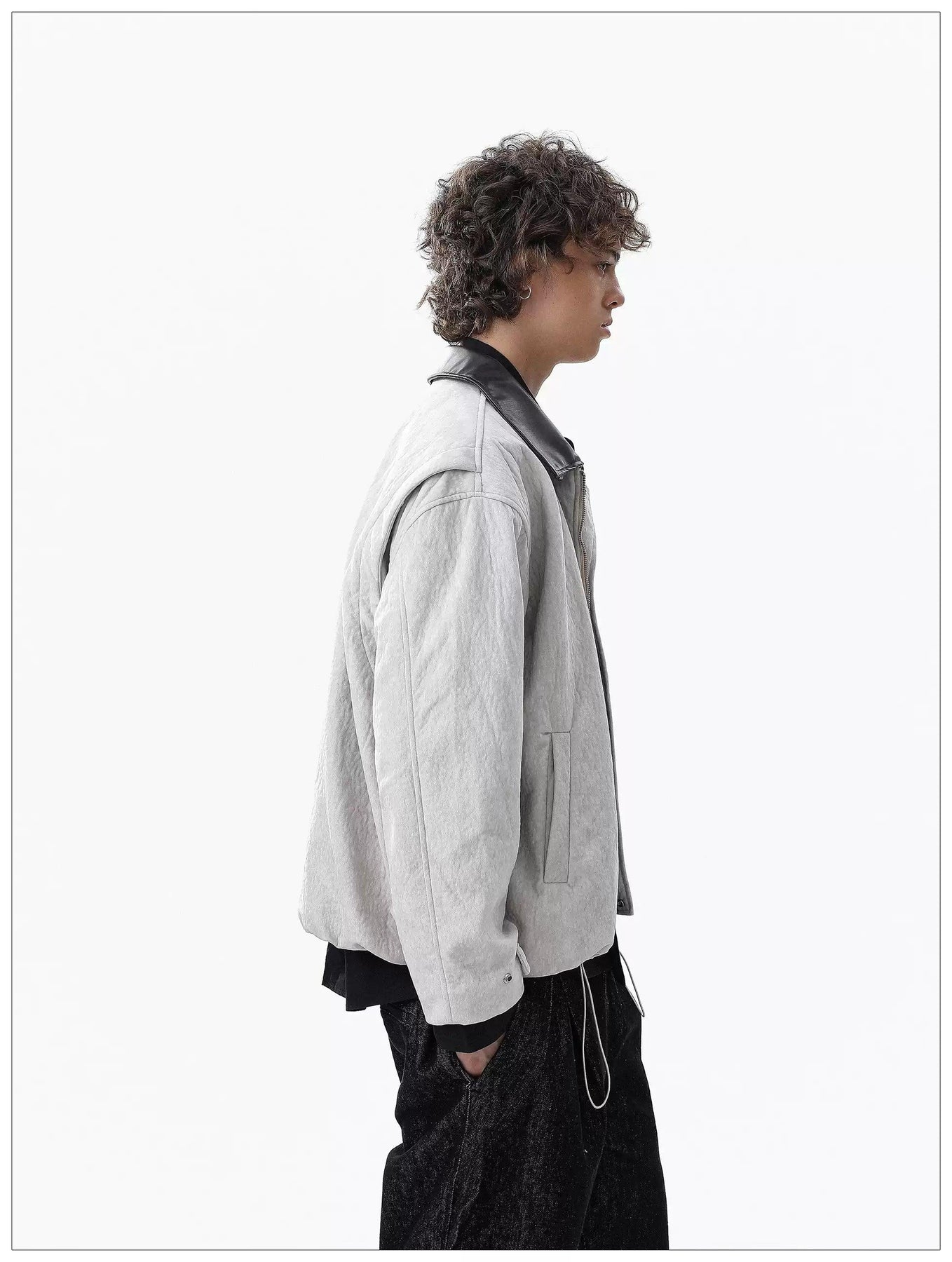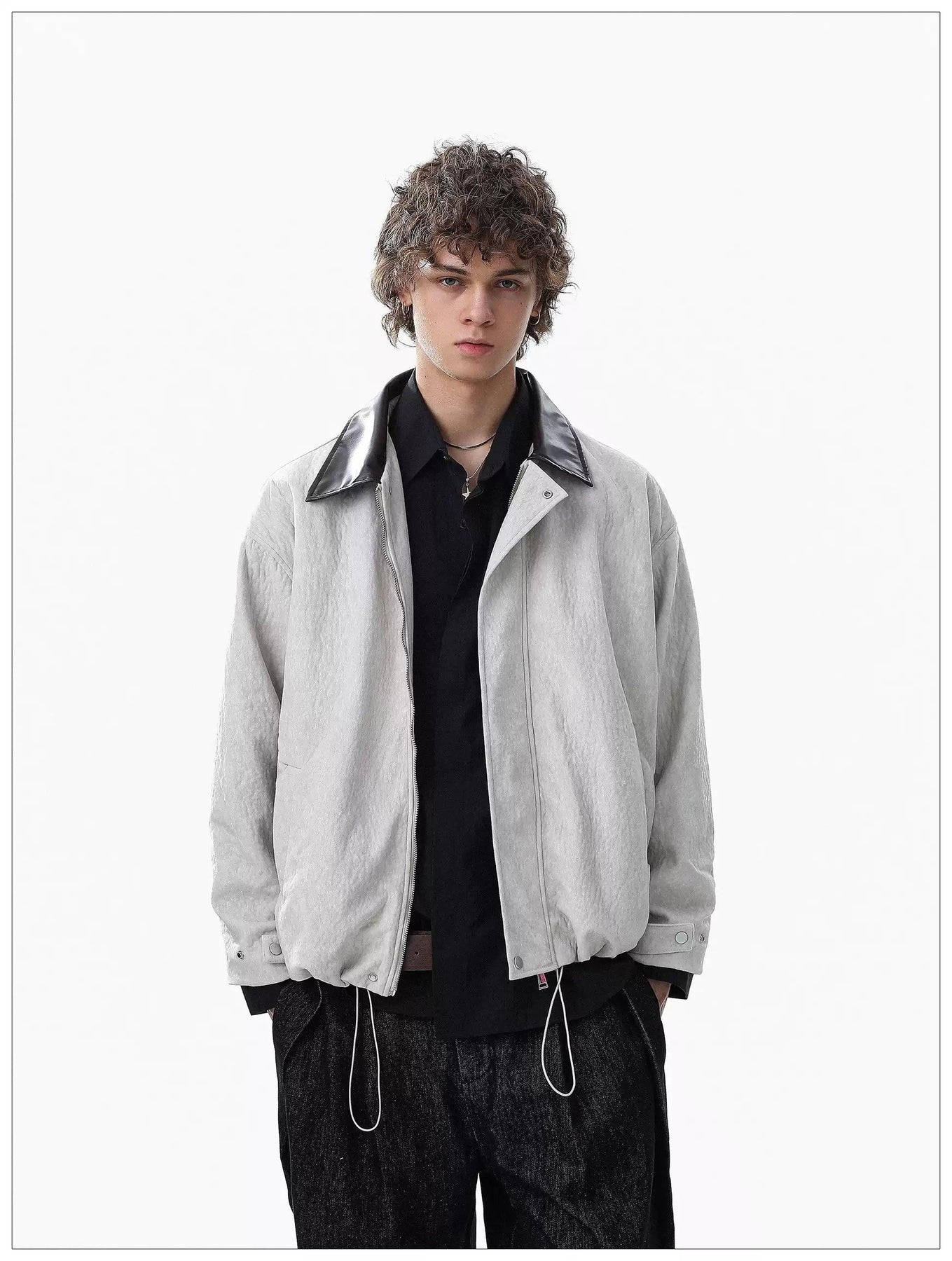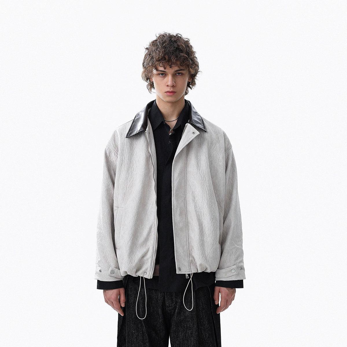 Contrast PU Leather Collar Jacket