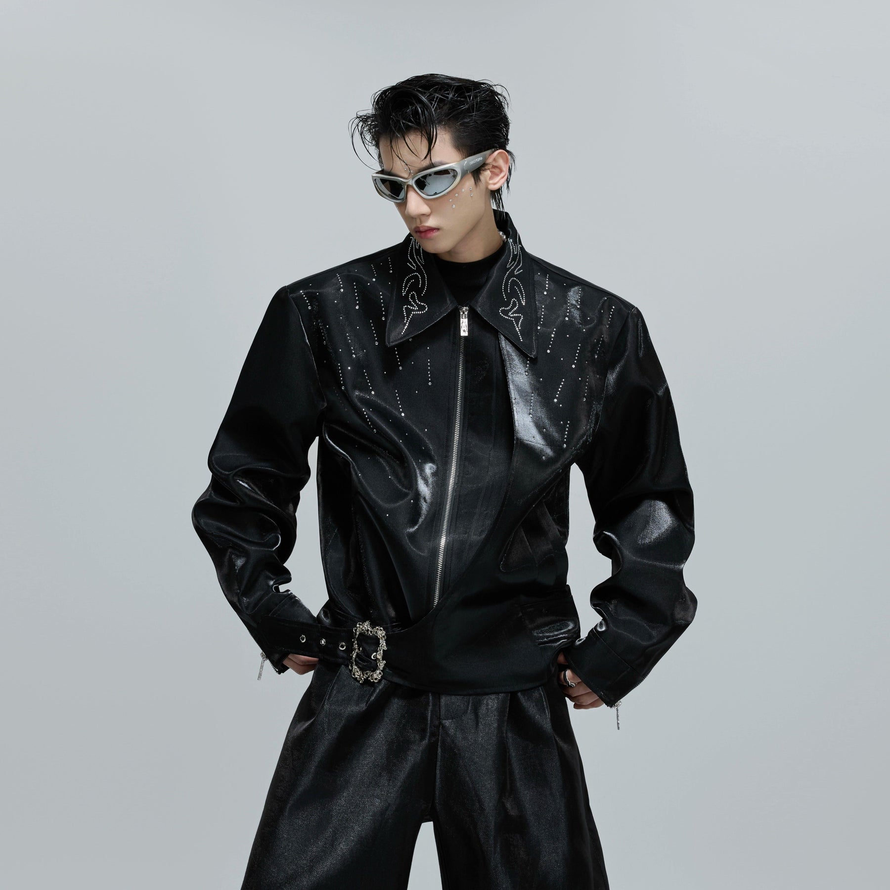 Rhinestone Detailed Coated Jacket