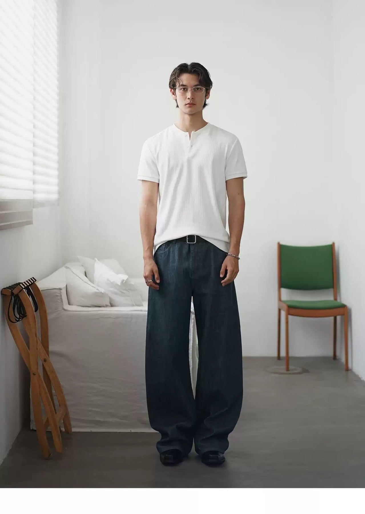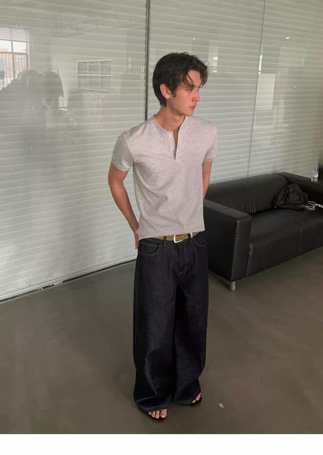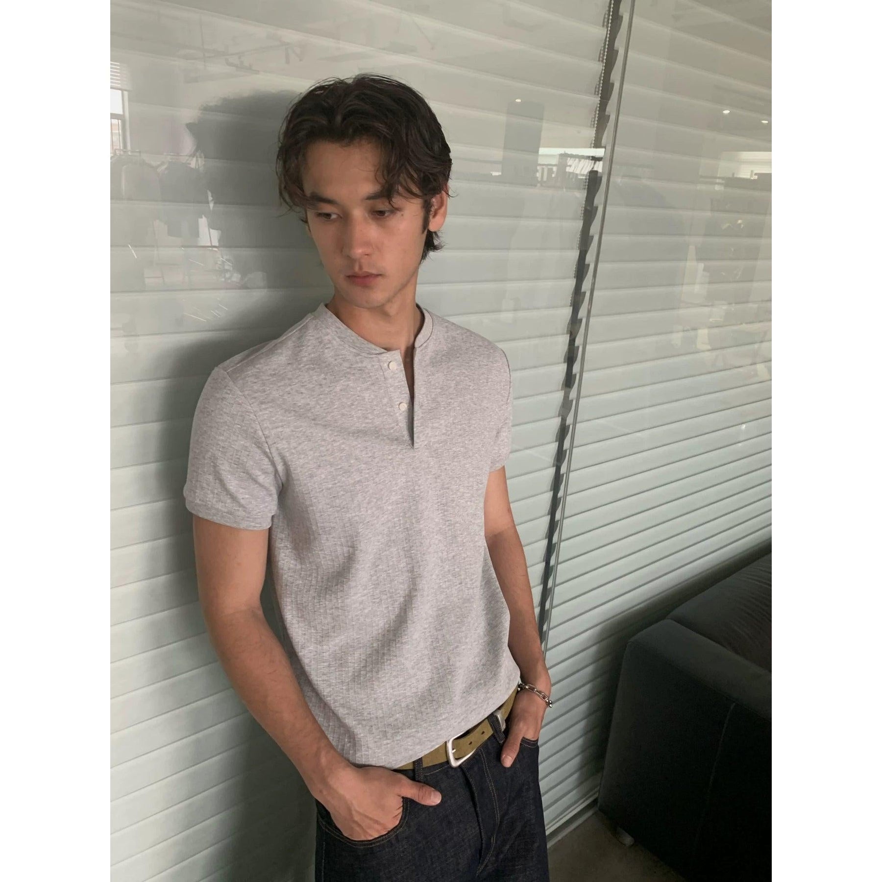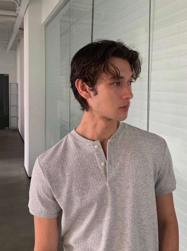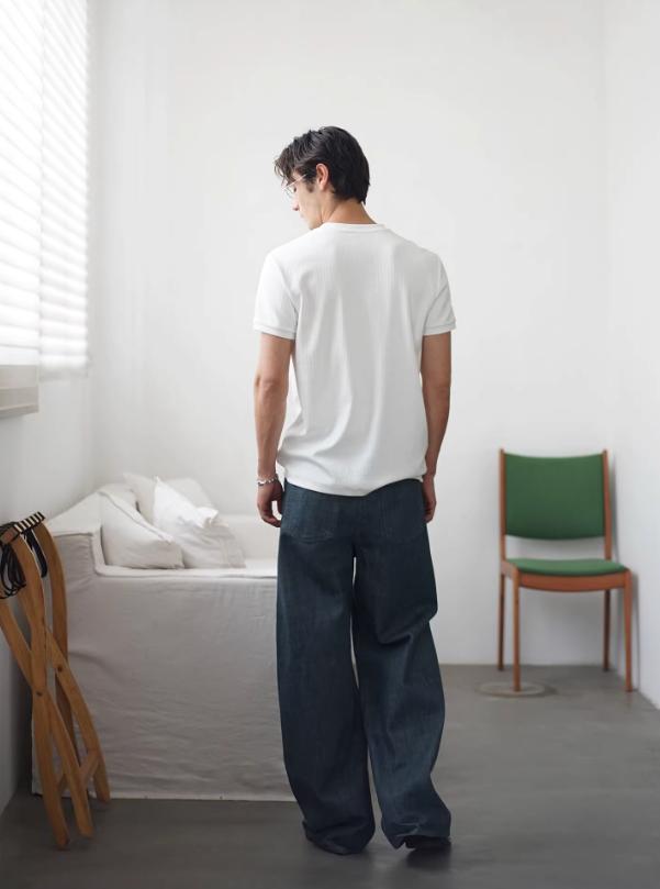 Textured Henley Collar T-Shirt